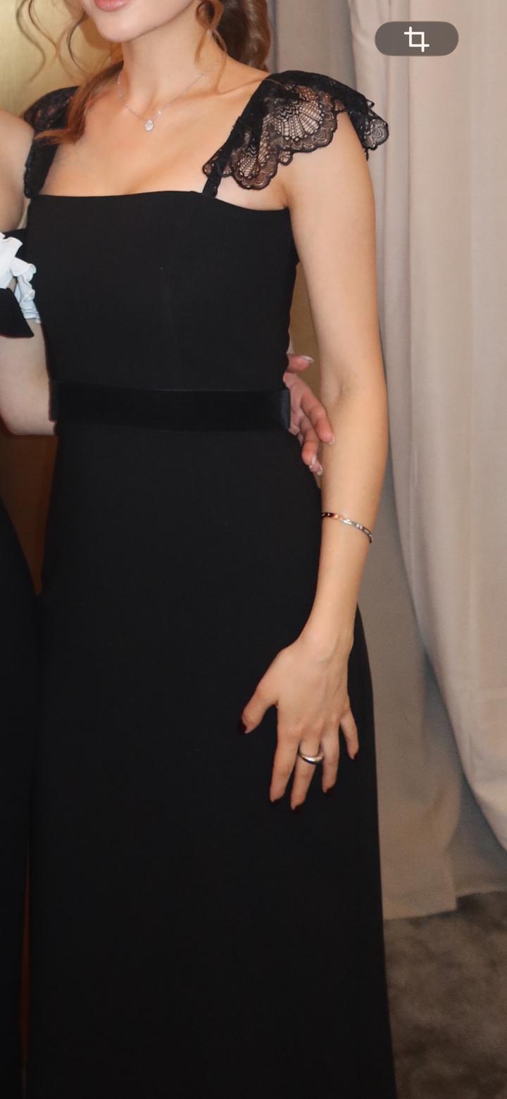 Черное корсетное вечернее платье с бархатным ремешкомXS