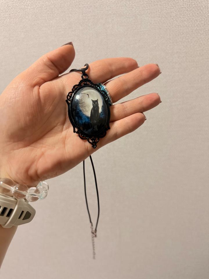 Кулон в готическом стиле.Черная кошка в лунном свете.Отлично подойдёт для тематических вечеринок и в повседневной жизни. Артикул: 504916