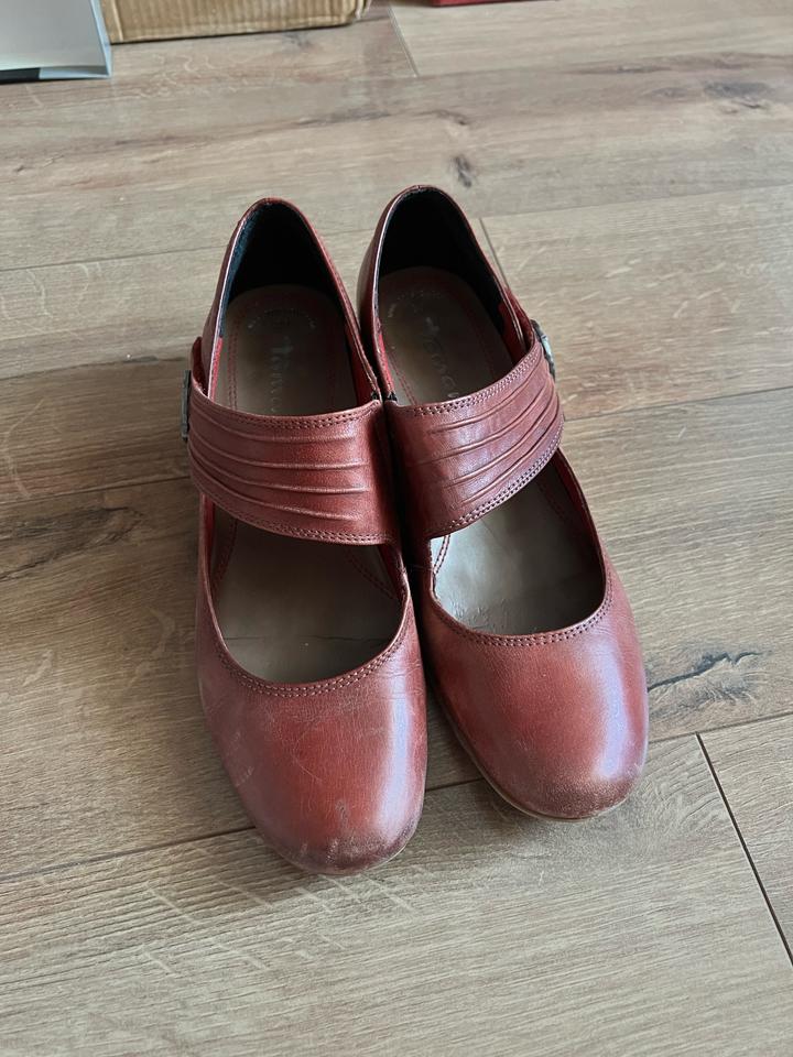 Кожаные туфли цвета Бордо от Tamaris, 38 размер, на липучках. Липучки хорошо держат. Следы носки есть, могу отправить побольше фото. Артикул: 504923