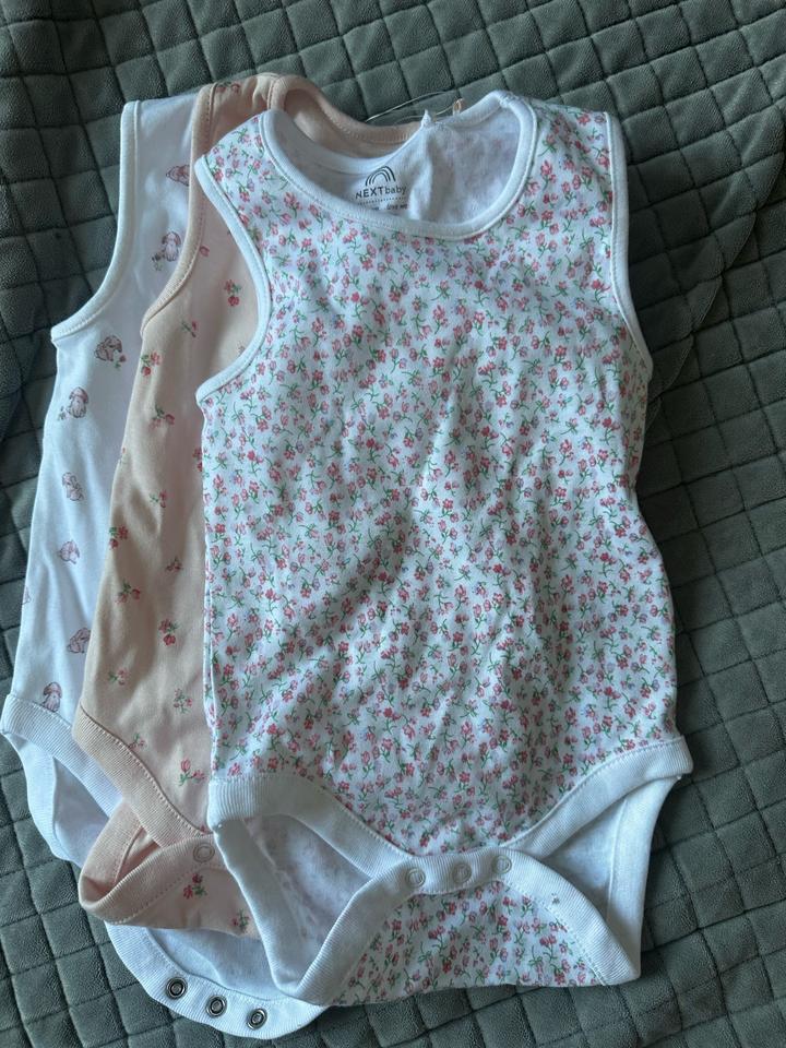 Майка боди для девочек летние NEXT. Размер 9-12 мес, 3 шт. Абсолютно НОВЫЕ. Торга нет. Артикул: 504946