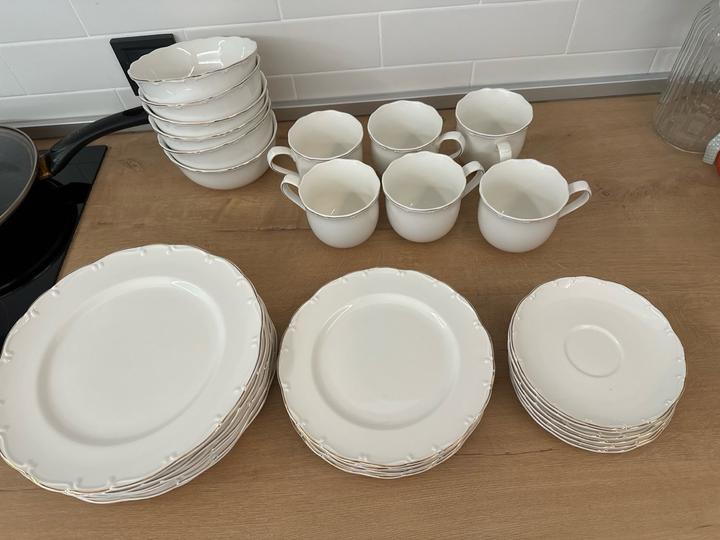 Продам сервиз посуды на 6 персон. Состояние отличное, покупала за 60 тыс, продам за 25 тыс тг В наборе: большие тарелки, обычные тарелки, чайные тарелки, супницы и чашки Артикул: 505033