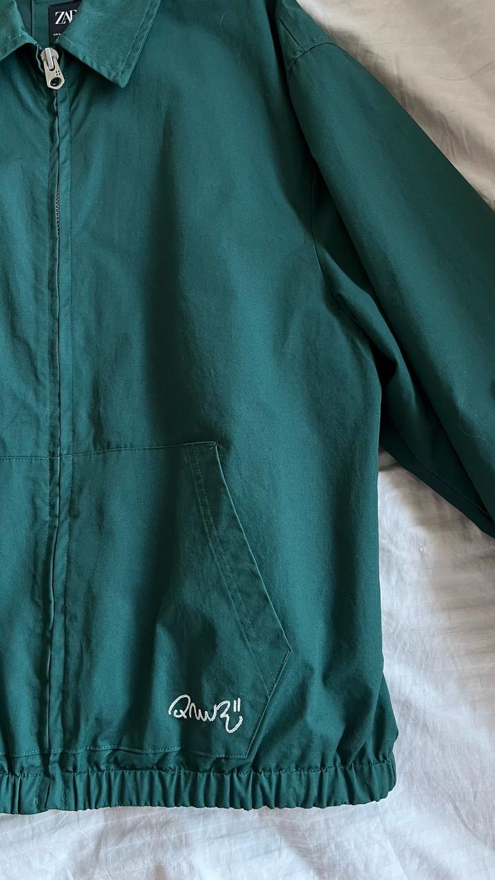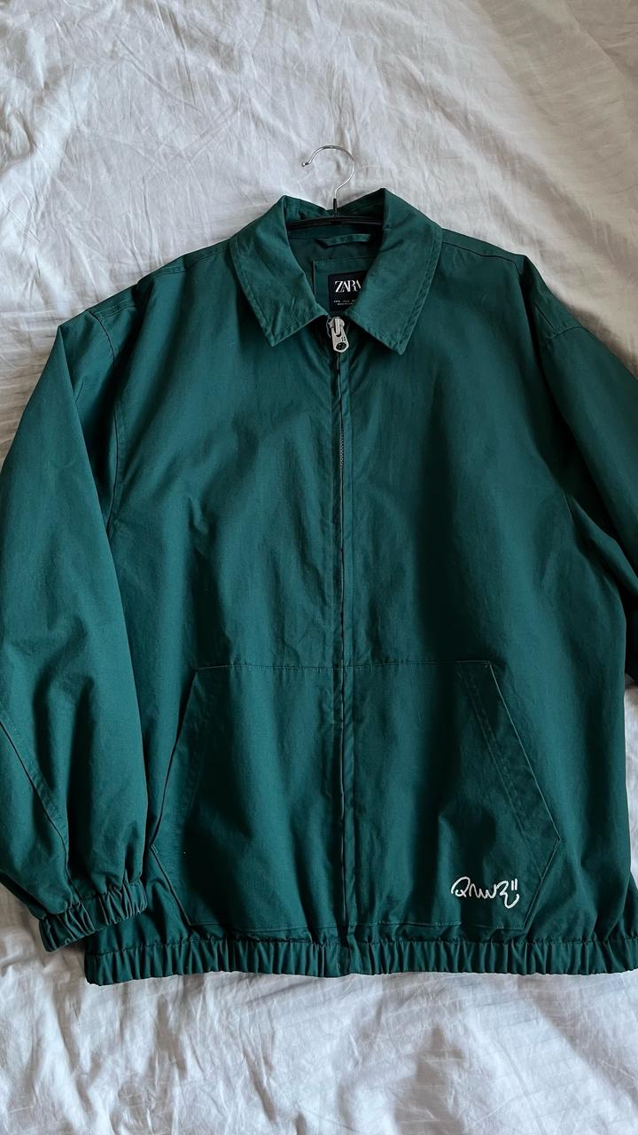 Бомбер Zara из мужского отдела в размере S. Заказывала себе на размер S как оверсайз, так же подойдет на M, ориентируйтесь по мужской размерной сетке в Заре. Глубокий изумрудный цвет красиво сочетается с белой вышивкой на спине. Без бирки, в носке был 1 раз. Заказывала в Португалии, у нас стоил 30.000 Артикул: 505036