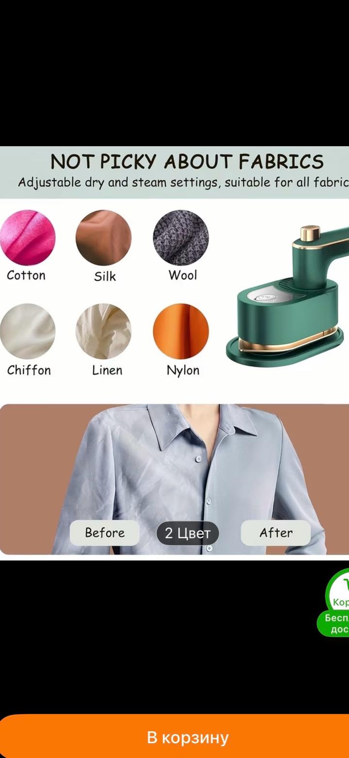 Ручной портативный электрический утюг 40 Вт бежевого/зеленого цвета (стандарт EU), с функцией быстрой паровой обработки за 30 секунд, складной конструкцией и легким корпусом, что делает его удобным для путешествий; подходит для различных тканей, таких как трикотаж. Артикул: 505111