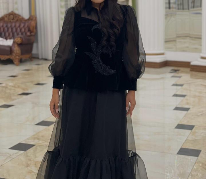 Чёрная (двойка), жилетка отдельно со стразами , внутри базовое платье. Производство Турция 🇹🇷 . Покупала за 45 000 тенге. Артикул: 505302