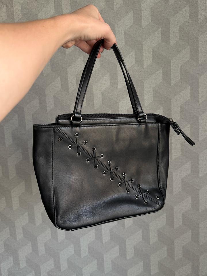 Кожаная сумочка британского бренда Patrick Cox. Винтаж. Подклад в отличном состоянии, наружные нюансы на фото. Внутри два кармашка на замке, плюс отделение для телефона. Размер сумки - 22х19х8см Артикул: 505413