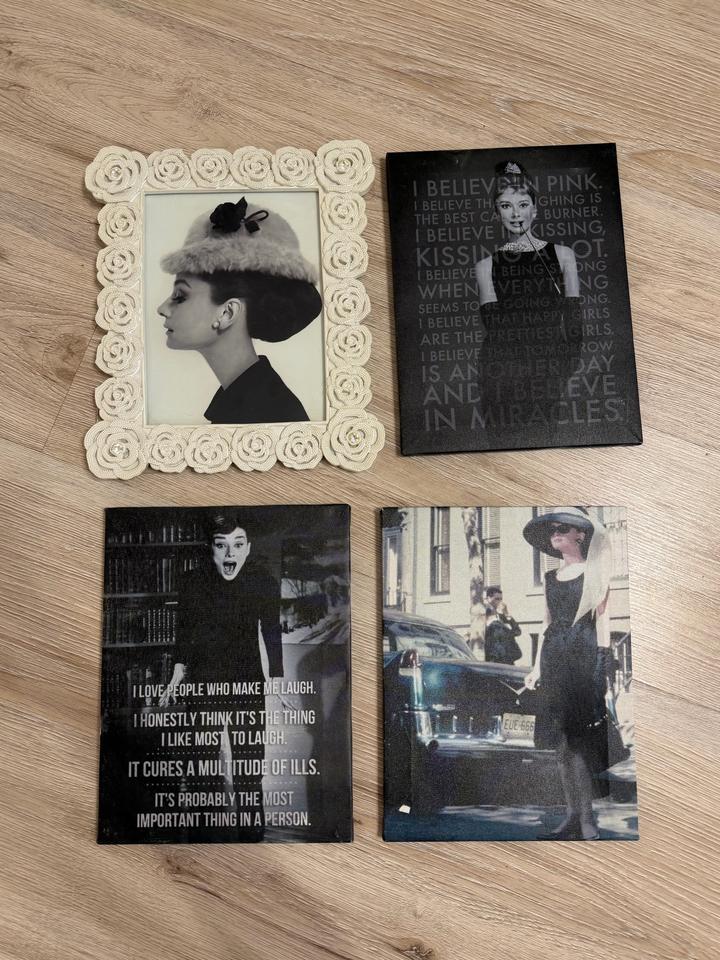 Продам интерьерные постеры Одри Хепберн, подойдет для кофейни/салона. Одно фото в красивой рамке, три постера на холсте Размер 20*25 Артикул: 505476