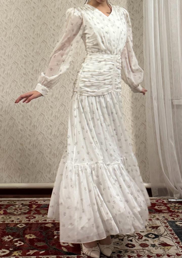 Белое платье с цветочным принтом в идеальном состоянии , одевала только один раз на мероприятие всего 2часа Артикул: 505557