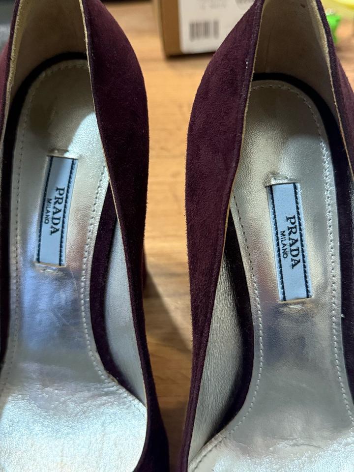 Туфли Prada оригинал, 40 размер, выходили один раз, в идеальнейшем состоянии, красивый винный цвет, замша Артикул: 505592