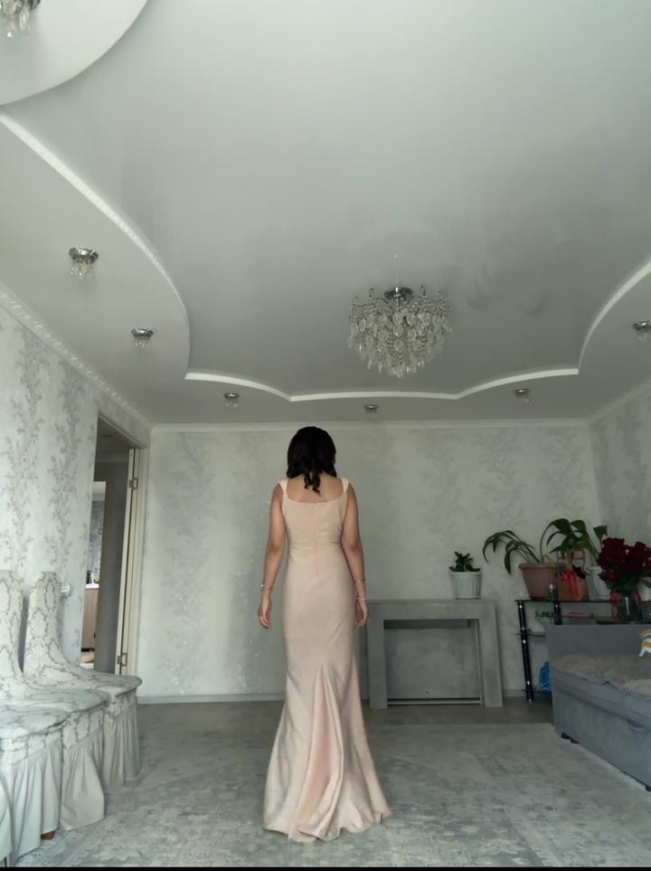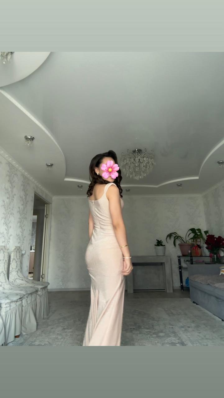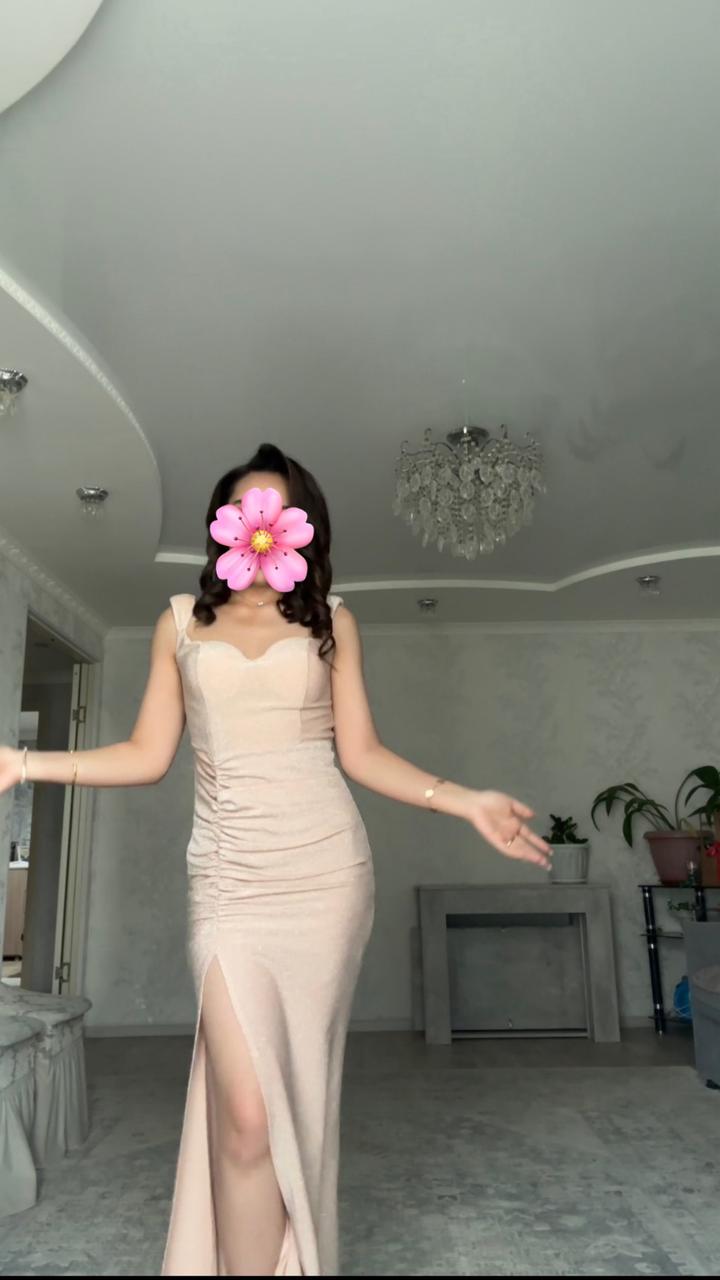 Блестящее бежевое платье с прекрасным вырезом,размер S Артикул: 505676