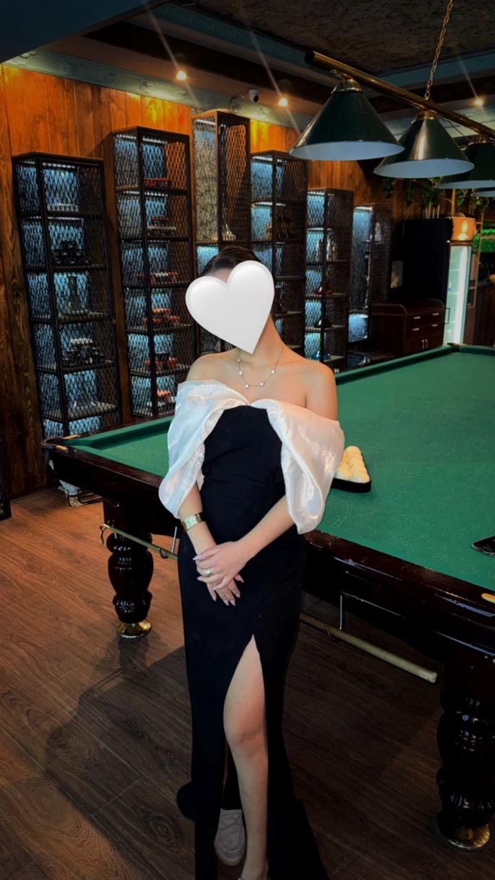 Классическое сочетание чёрного и белого, которое всегда в тренде. Необычный фасон с открытыми плечами подчеркнёт вашу женственность, а разрез на ноге добавит образу изюминку. • Состояние: идеальное надето 1 раз • Размер: S/M • Цена: 10000тг Артикул: 505705
