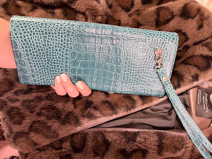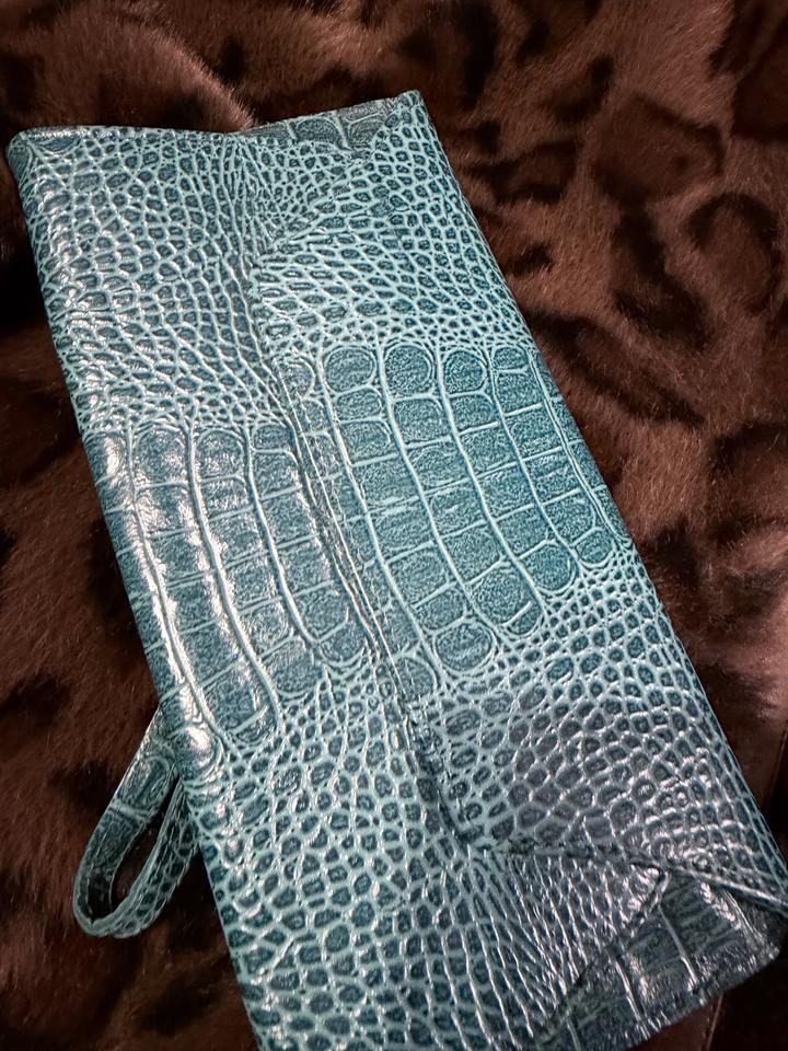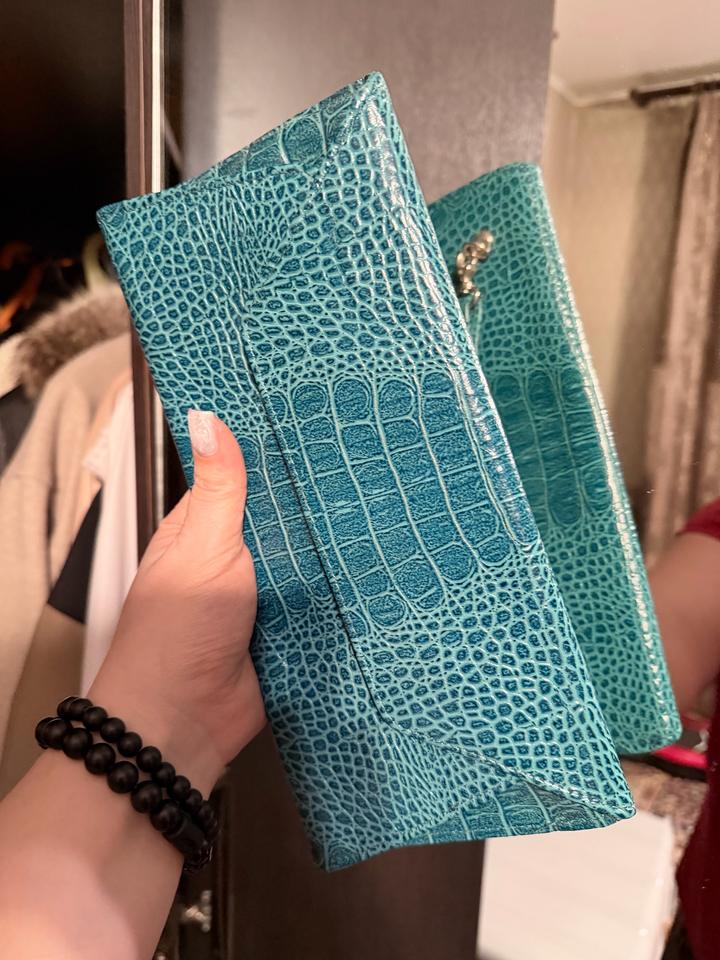 Клатч под крокодила, бирюза. Для мелких вещей (деньги, карты, телефон) Артикул: 505838