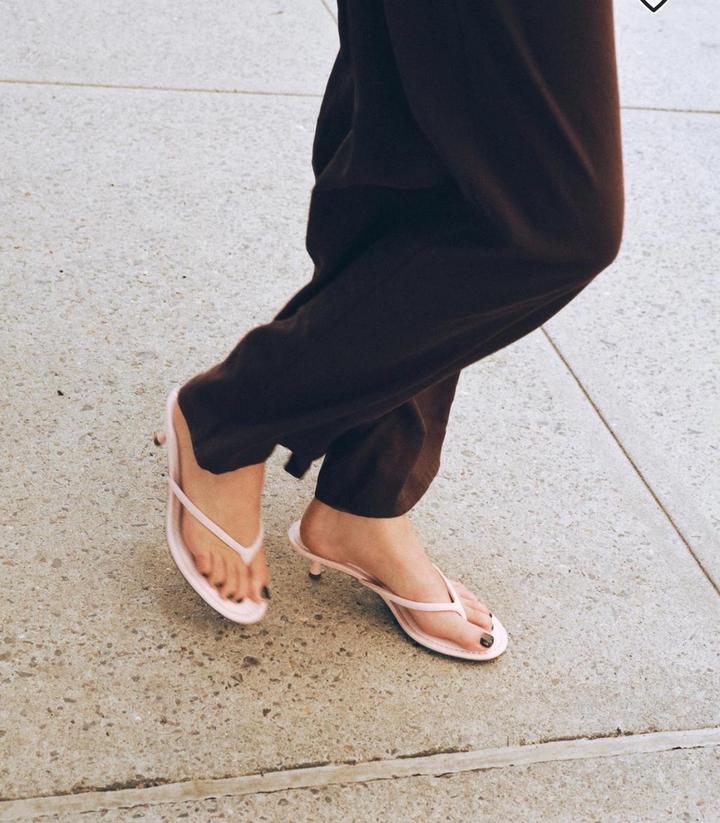Босоножки с мягким эффектом. Передние ремешки с фиксацией для пальцев. Тонкий каблук kitten. Декоративная строчка на подошве. Закругленный носок. Высота каблука: 4 см. Артикул: 505854