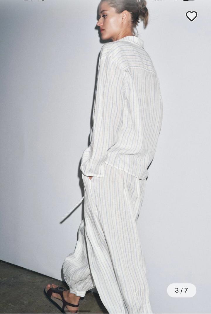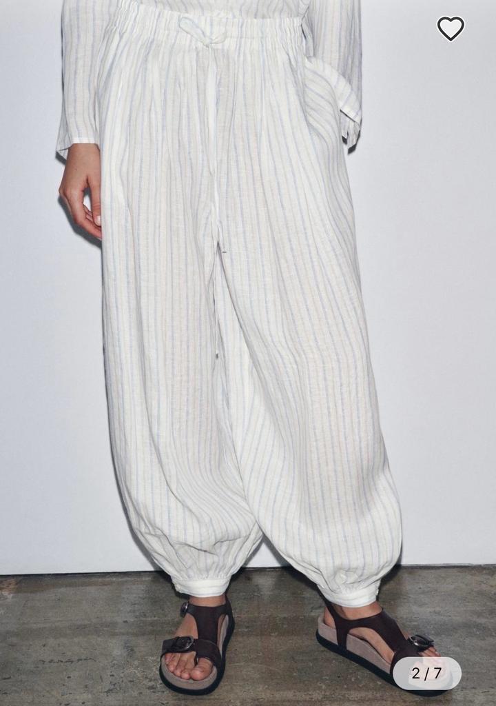 Коллекция Zara «ZW» Брюки из 100% льняной ткани. Средняя посадка, эластичный пояс со шнурком. Потайные боковые карманы в швах. Зауженный книзу присборенный низ с манжетами на пуговицах. Подойдет на S Артикул: 505875