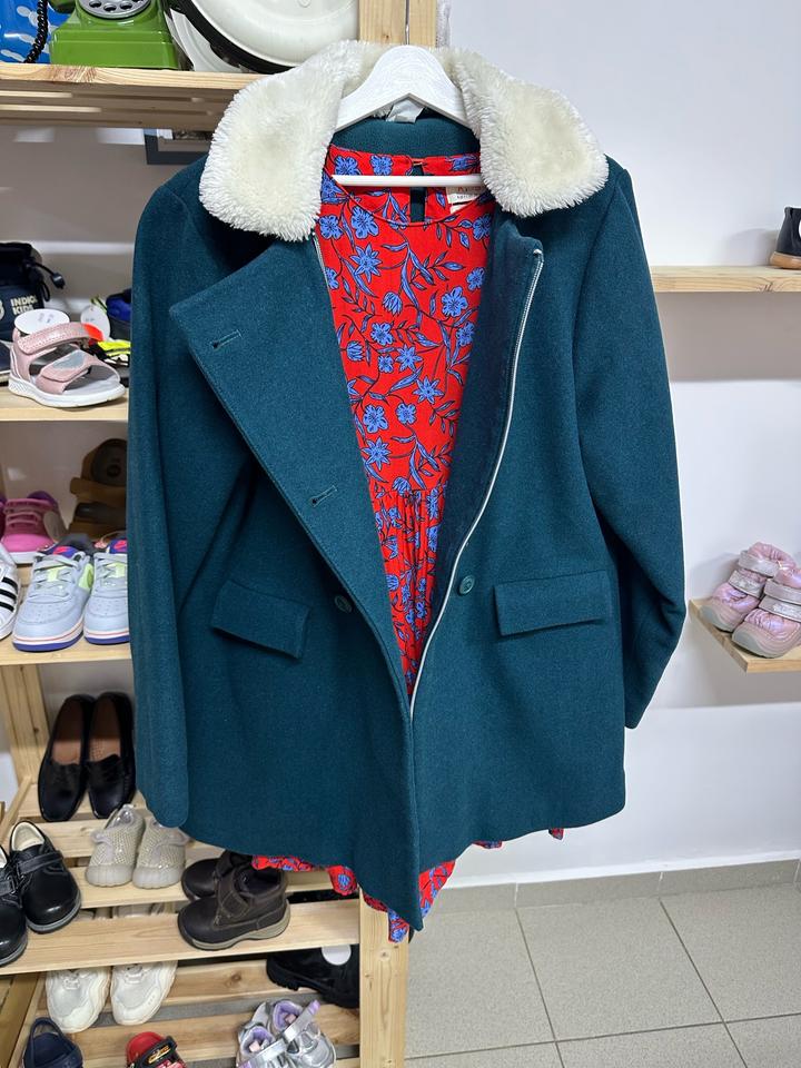 Состояние отличное ,состав шикарный 80% шерсти .Очень удобно ,что есть и замочек и пуговицы.Размер на вид на 12-14 лет даже .Воротник снимается при желании.Цена шикарная просто Артикул: 505911