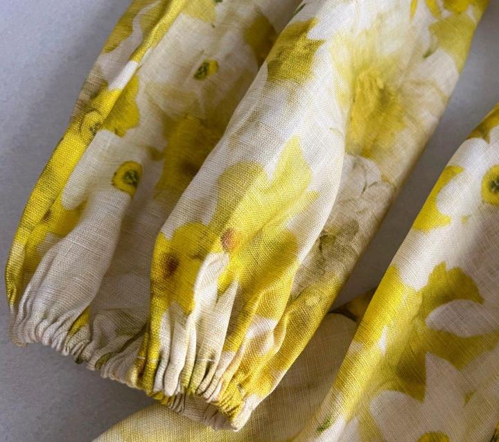 Новое платье реплика Zimmermann Wonderland, 100% лен. Австралийский размер 2, соответствует M/L (46). На 44 будет большое ! Бюст 94 см, талия 80 см (можно утянуть поясом), длина 85 см, рукав 60 см. Маленький нюанс сзади на спине - белое пятнышко (типа зацепки) ' см фото, практически не видно. Внутренней бирки с составом ткани нет, так прислали . Фото на манекене и белом фоне - реальные, актуальные. Смотрите мой профиль - другие объявления. Артикул: 505932