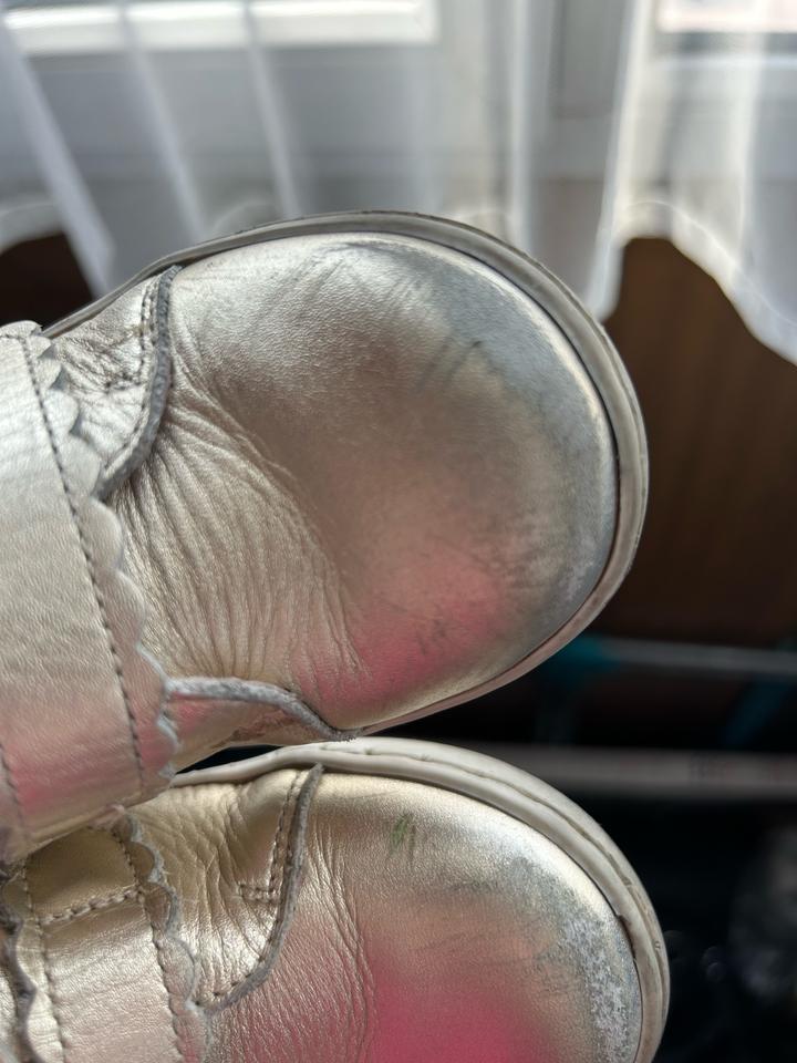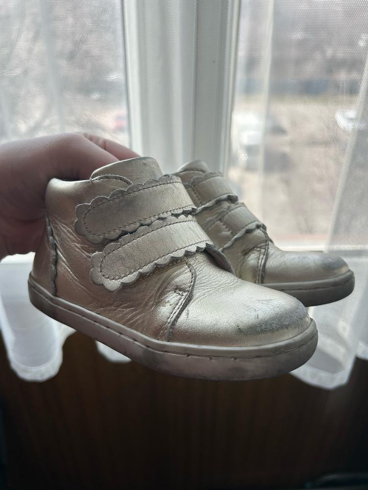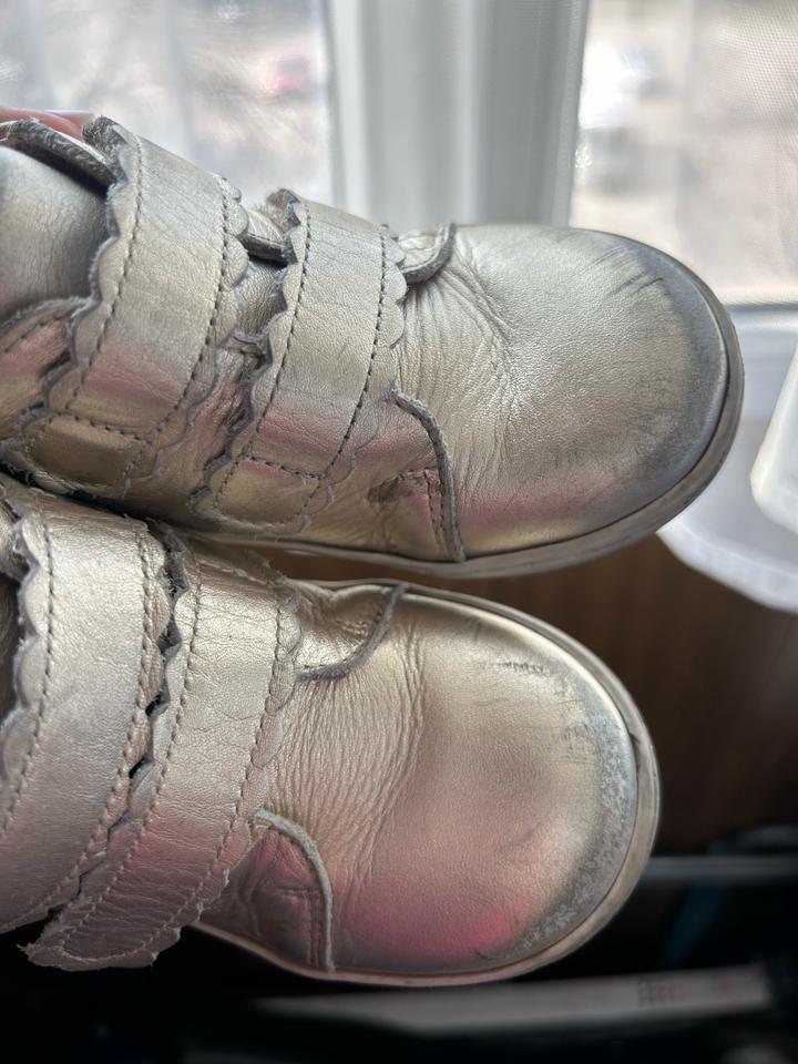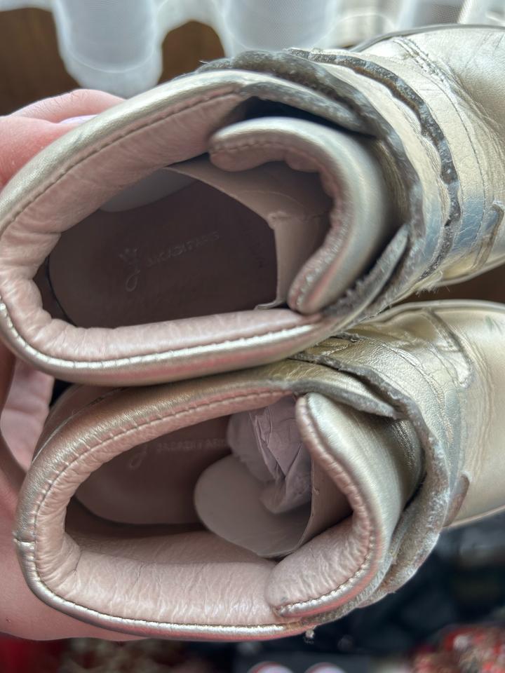 Ботинки для девочки jacadi, очень удобные, есть потертости но можно покрасить в обувном. Золотистого цвета. Оригинал Артикул: 506093