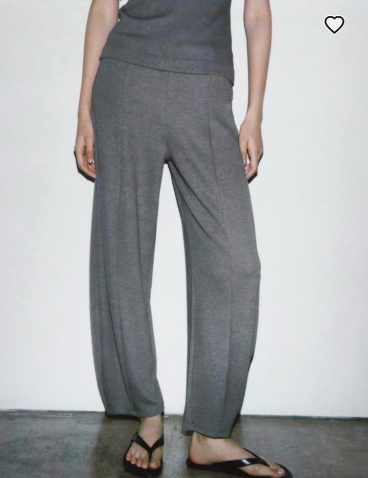 Брюки с высокой посадкой и регулируемым шнурком на талии. Широкие штанины. ЦВЕТ: Серый с меланжевым эффектом 52% ПОЛИЭСТЕР 47% ВИСКОЗА 1% ЭЛАСТАН Артикул: 506244