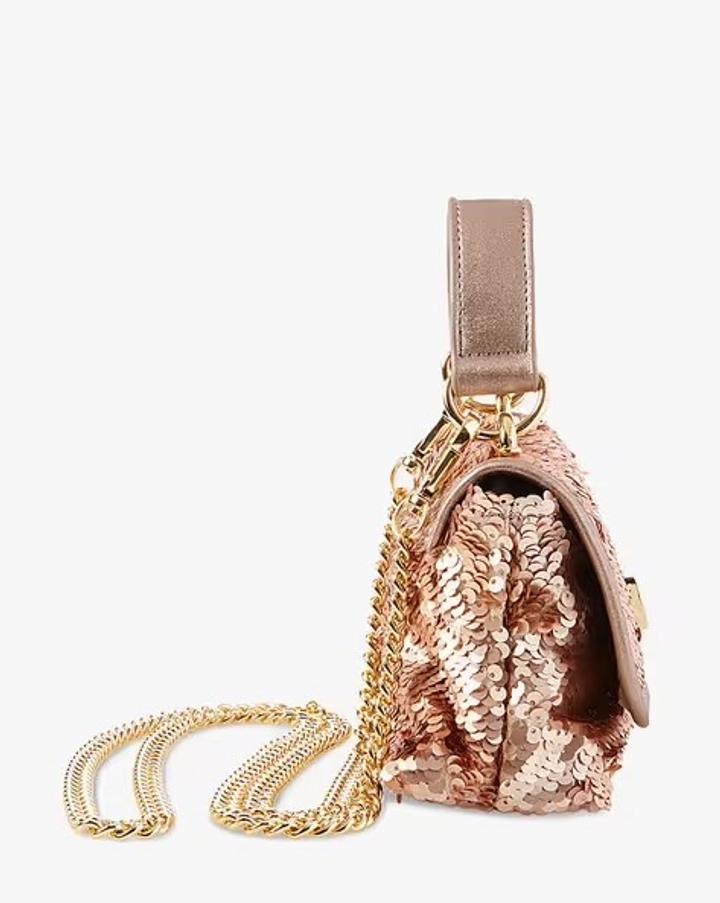Цвет розовое золото. С пайетками. Качество отличное. Цепочка золотистого цвета. Смартфон поместится Артикул: 506260