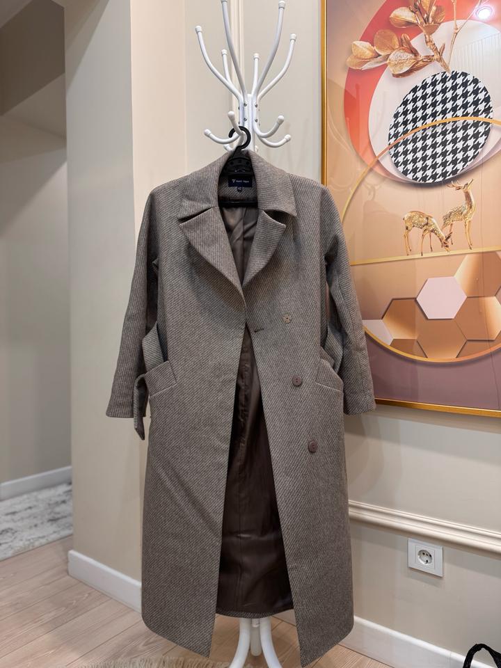Продаю стильное пальто российского производства. Размер 42 (s) Надевала очень редко, состояние отличное, почти новое. Качественный материал, хорошо держит форму, классический фасон. Цвет бежево-коричневый. В составе есть шерсть 70%, также имеется пояс. Артикул: 506348