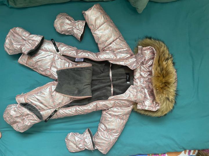 Продается очень красивый и теплый зимний комбинезон в стиле Dior. Нежный розовый цвет, стильный дизайн, отлично подойдет для девочки Состояние отличное, надевали 2–3 раза Очень теплый, мягкий внутри В комплекте варежки 74 см Артикул: 506640