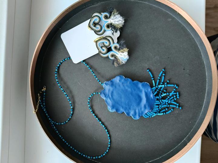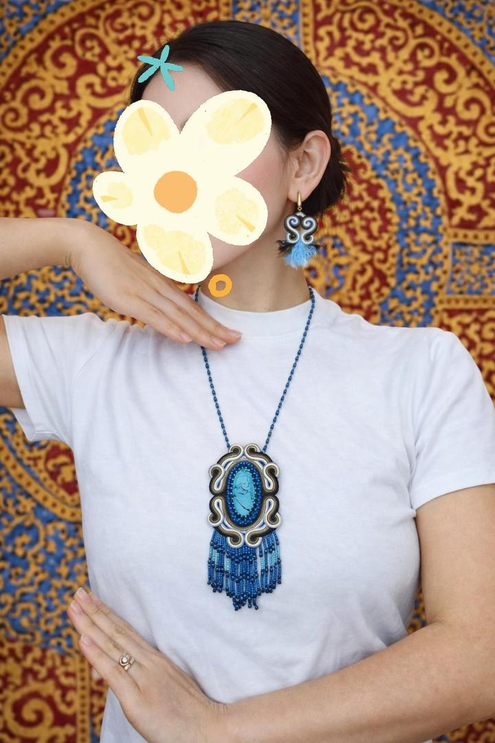 Украшение ручной работы, новое, шью сама из ткани и бисера. Легкое, эффектное для мероприятия. Серьги с напылением 925 пробы, не чернеет,обратная сторона на последнем фото видно Артикул: 506647