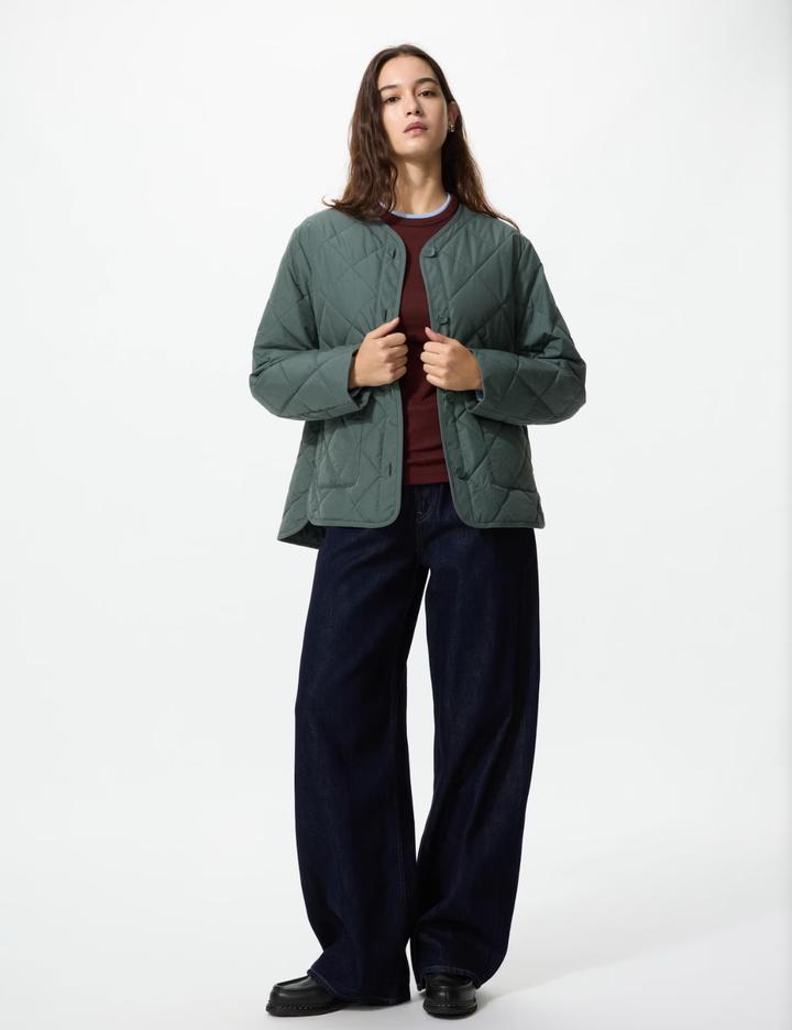 Легкая и теплая куртка без воротника Uniqlo PUFFTECH. Расцветка olive. Воротник можно сложить и изнутри закрепить на кнопку, получится V-образный вырез. Функция машинной стирки позволяет удобно стирать вещи в стиральной машине, не беспокоясь ни о чем. Размер L Артикул: 506649