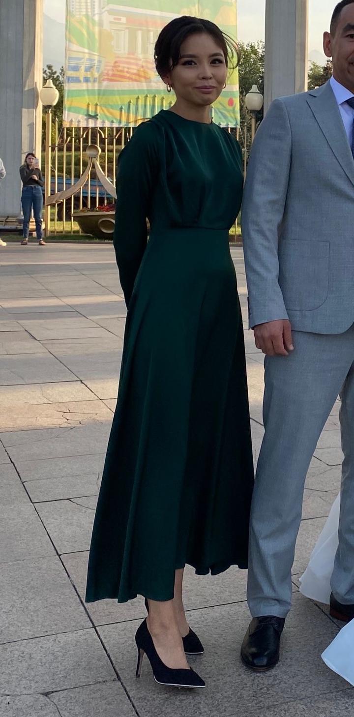 Темное атласное зеленое платье Состояние хорошее Артикул: 506728