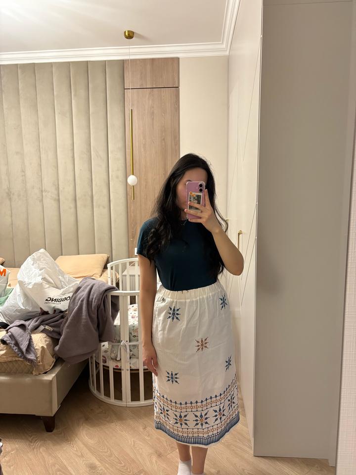 Летняя легкая юбка. Сделана в Италии. Очень красивая вышивка на ней, можно сочетать с разными цветами. Ткань немного просвечивает, но с грамотно подобранным бельем, думаю это не проблема. Этикетка была импульсивно снята при распаковке😆 но юбка ни разу не ношена, кроме как домашних примерок. Качество отличное. Артикул: 506745