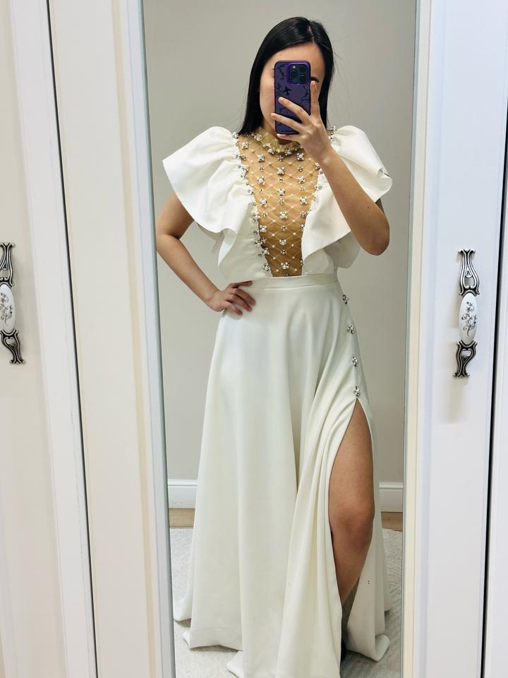 Продаю своё выпускное платье, надевала всего 1 раз. Платье в идеальном состоянии. Очень нежное, элегантное и эффектно смотрится на фигуре. Сшито на заказ — уникальный дизайн. Размер: s/m Артикул: 506873