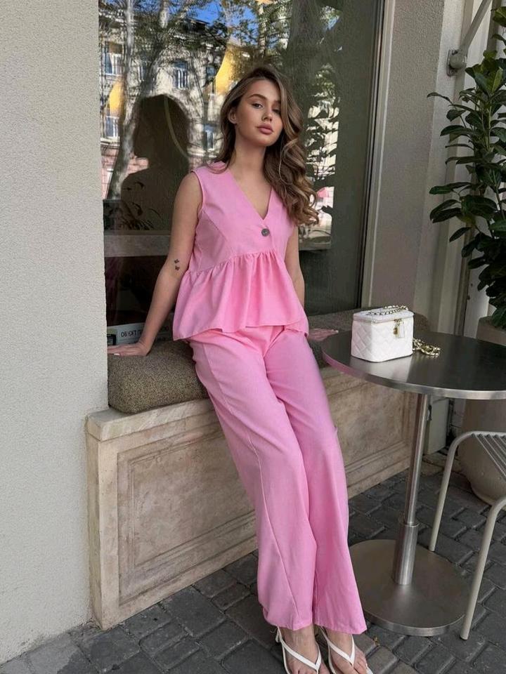 Костюм в отличном состоянии, подойдёт на размер 42-44, на 42 оверсайз посадка, брюки прямые на резинке, жилет с баской, тонкий полиэстер, не просвечивает, не мнется, идеально для поездок и отпуска, брюки на рост до 165. Больше товаров в моей инсте @second.sale.kz Артикул: 506891