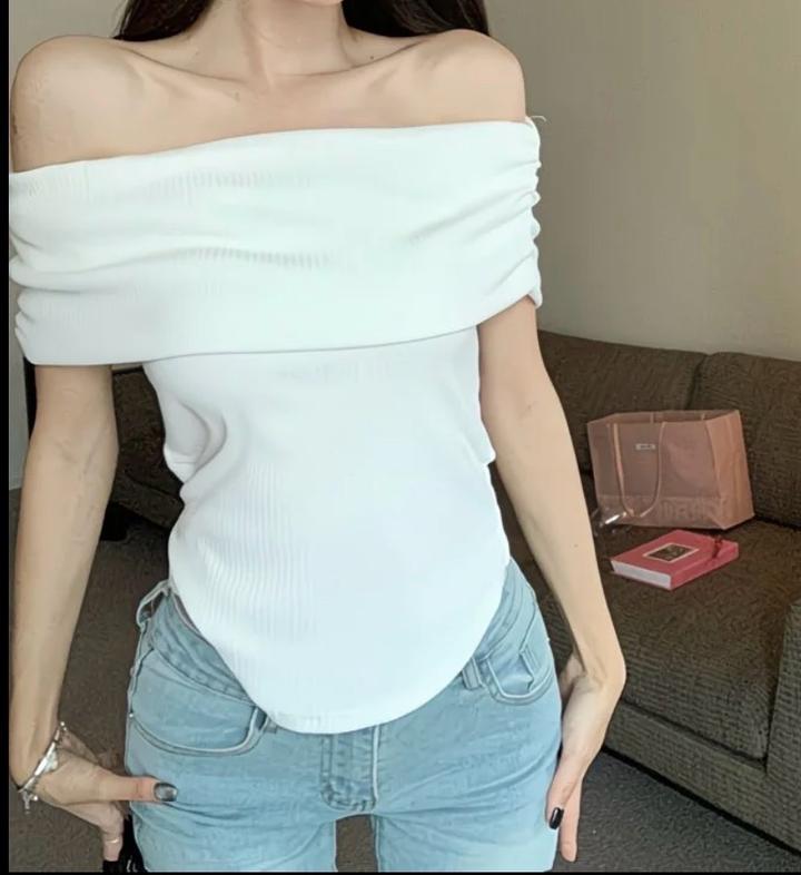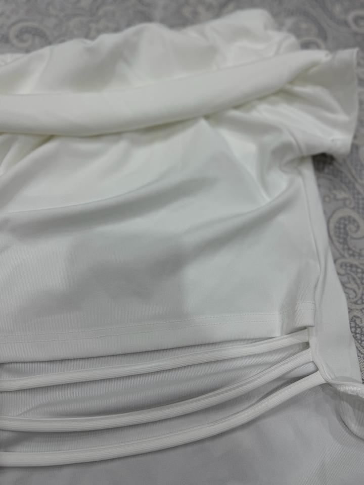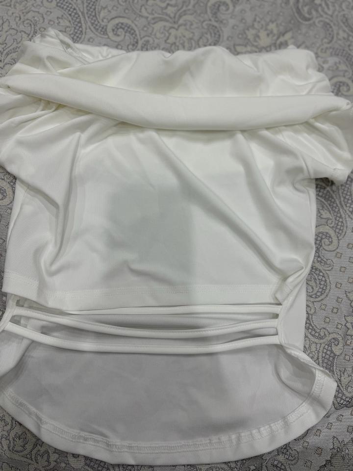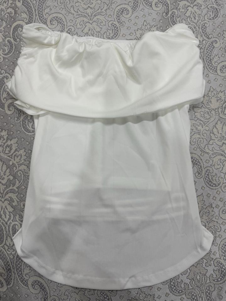 Белый топ с приспущенными плечами на размер SM, 42-44, сзади укорочен Артикул: 506905
