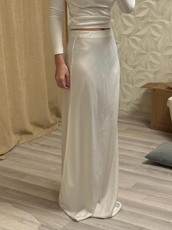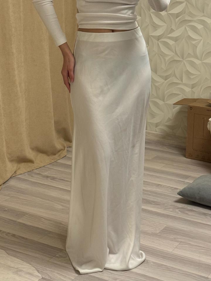 Белая атласная юбка макси длины на резинке, подойдет на С и М У меня рост 1.65 Немного полупрозрачная, руки не доходят сделать подклад, поэтому продаю Артикул: 506920