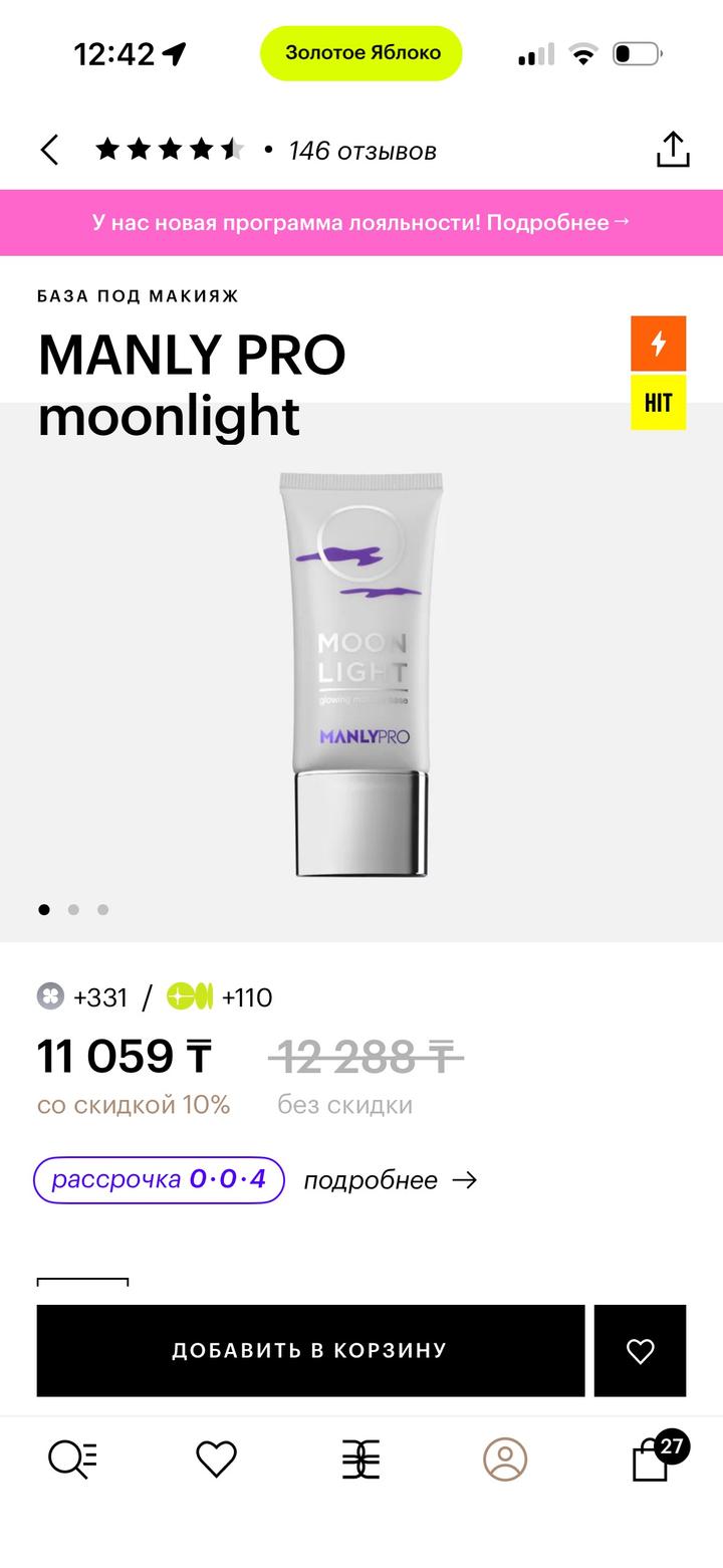 Сияющий праймер Manly Pro Moonlight. Свежий и новый. Покупала в ЗЯ на пробу, мне не подошел оттенок. Использовала 1 раз. Артикул: 506948