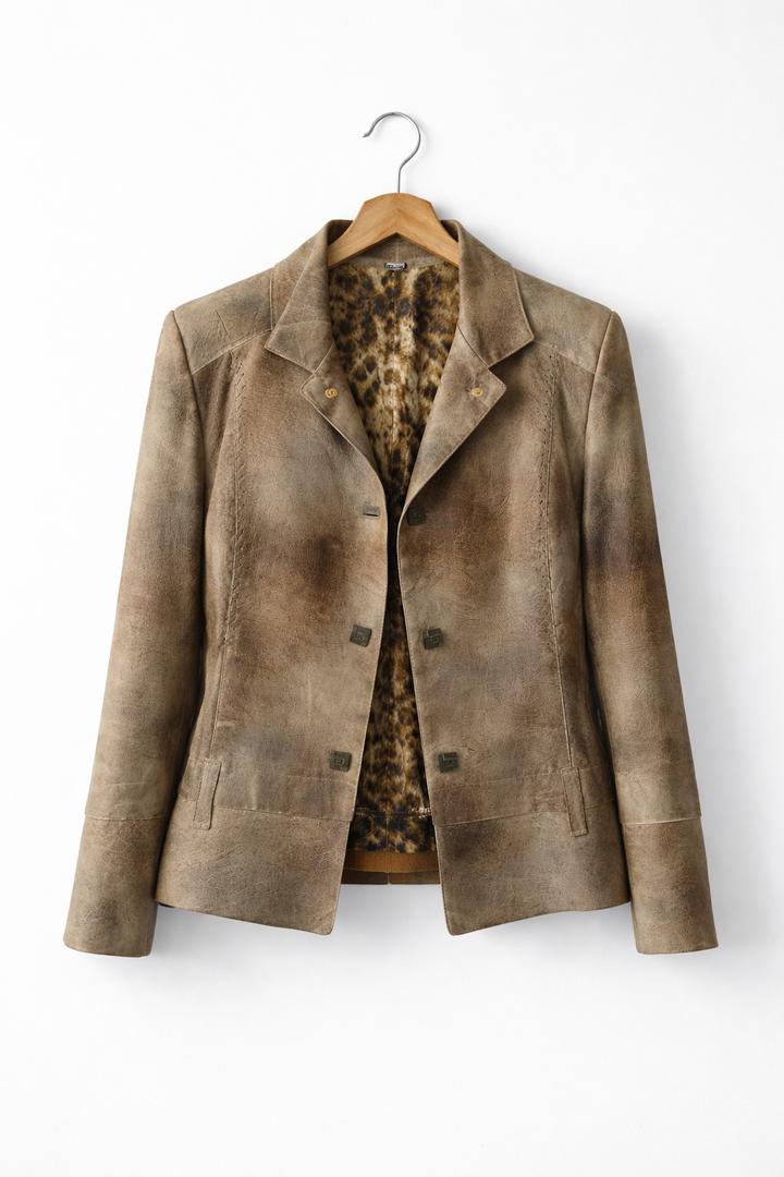 Стильный кожаный пиджак из натуральной кожи премиального качества. 🔹 Натуральная мягкая кожа 🔹 Эффектная винтажная фактура 🔹 Дизайнерская подкладка с леопардовым принтом 🔹 Качественный пошив и посадка 🔹 Выглядит дорого и нестандартно Состояние: новое (не носился) Размер: M Артикул: 506962