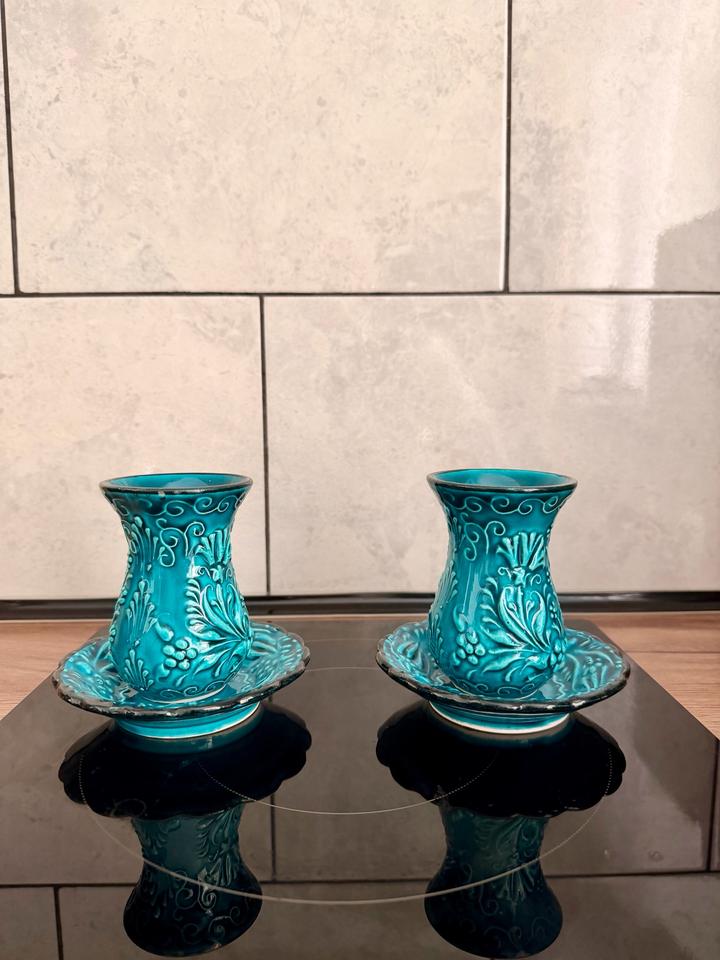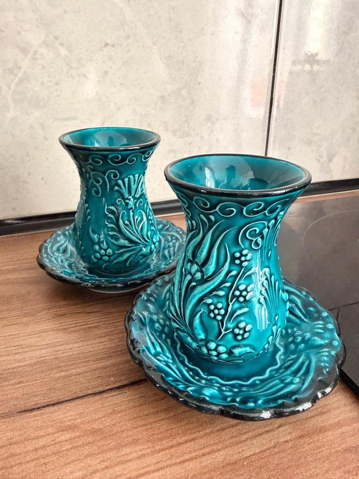 Продам набор из двух чайных пар - чашка + блюдце. Покупала в Стамбуле, красивый набор из керамики на 2 персоны бирюзового цвета. Артикул: 507011