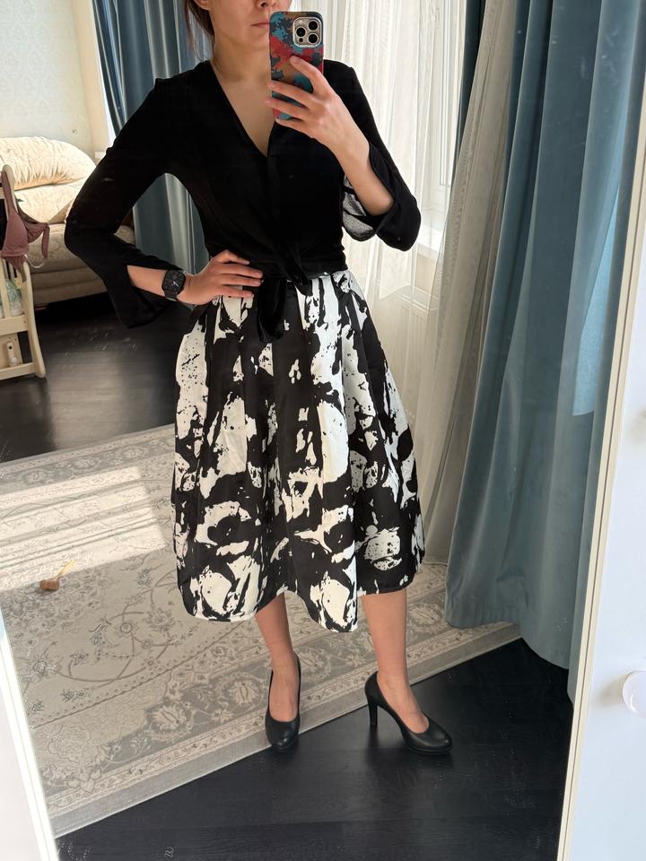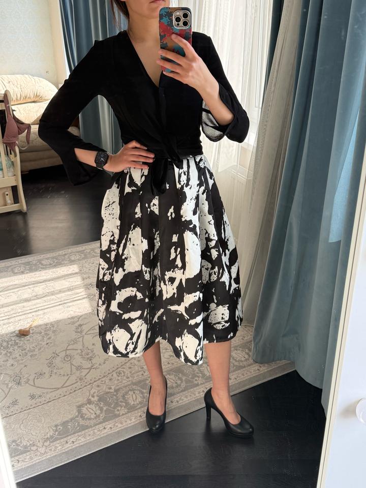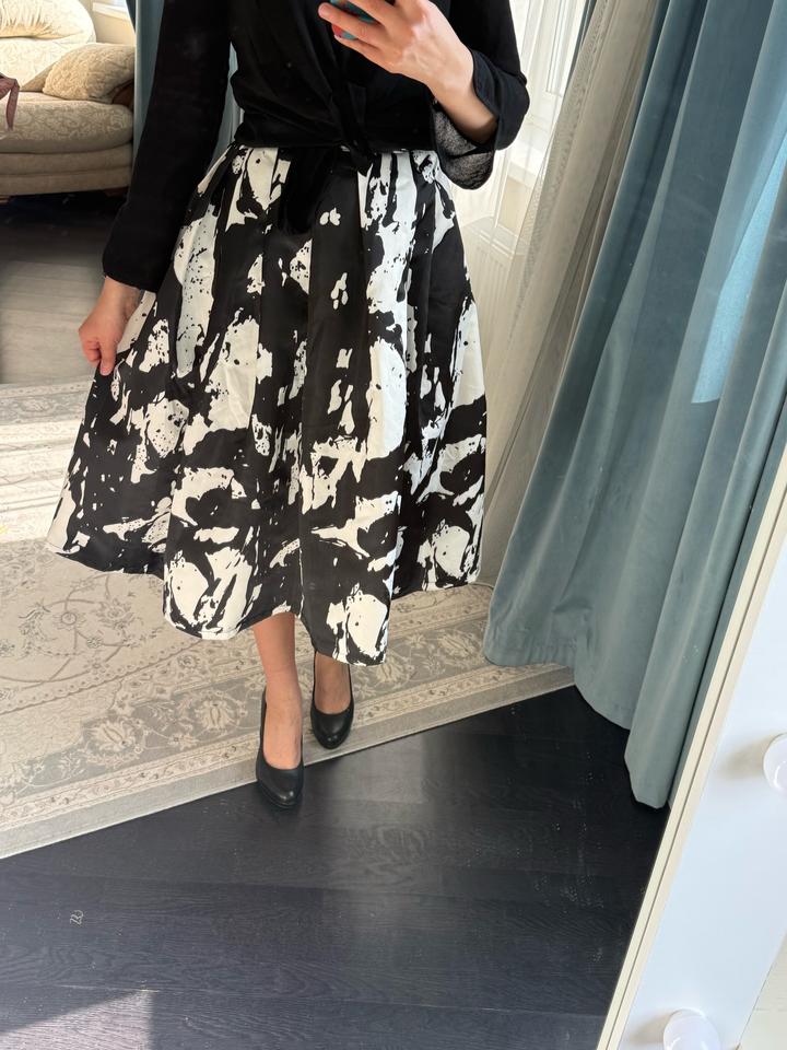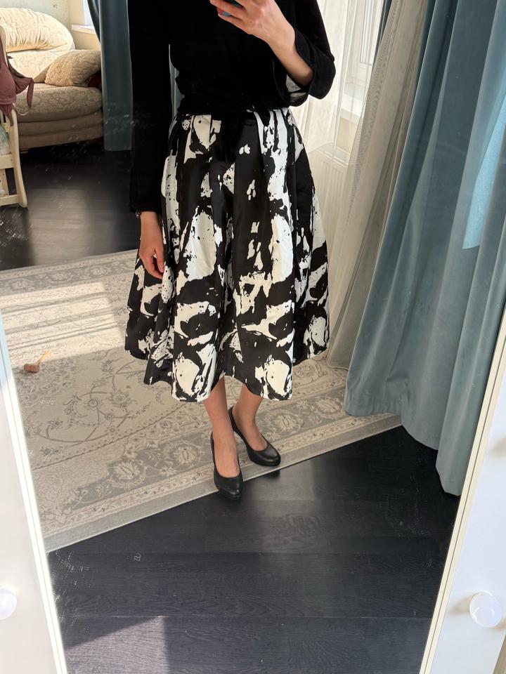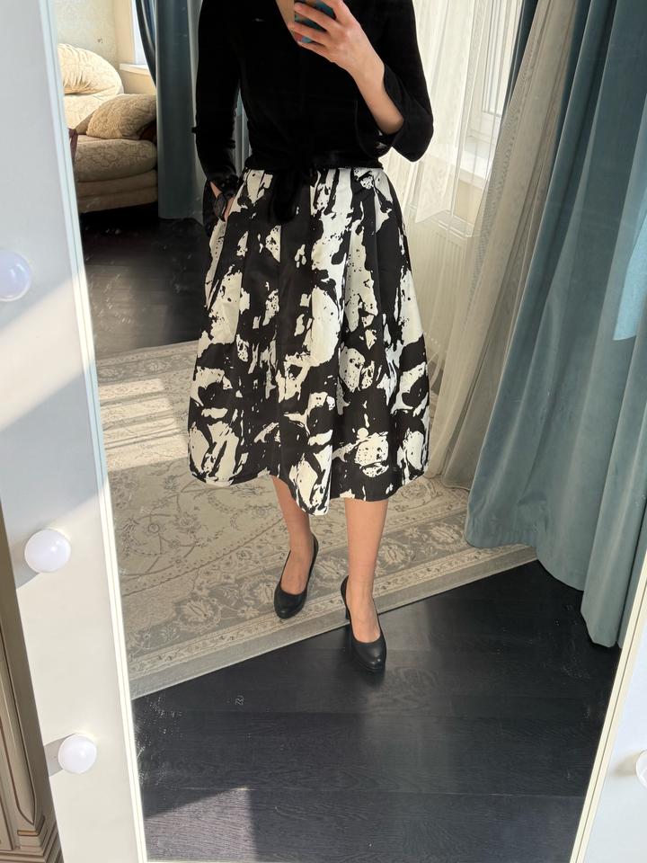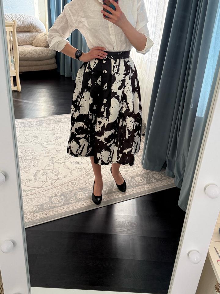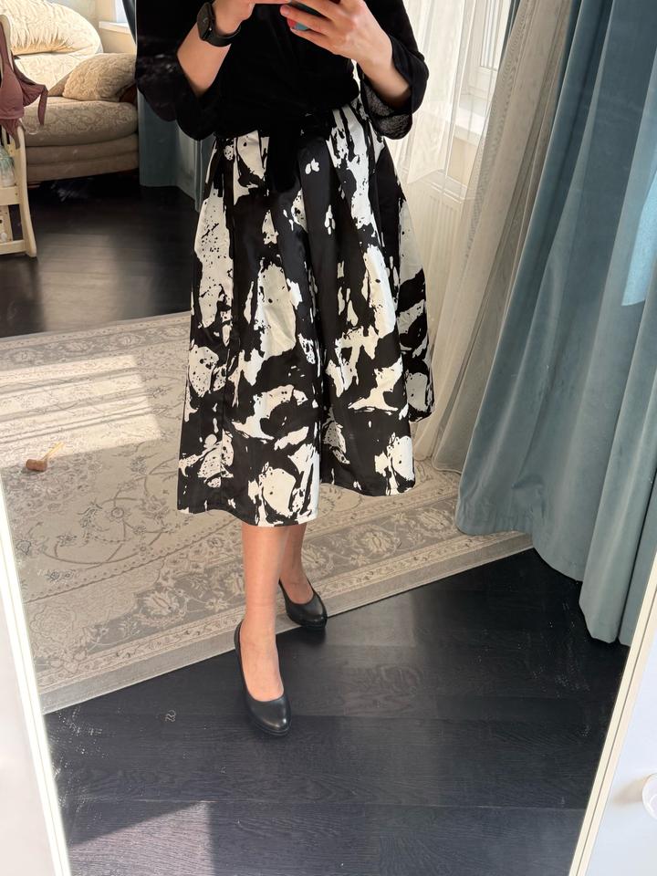 Качественная юбка, купленная в корейском бутике. Держит форму, имеются карманы. Снизу подклад. Материал плотный, похож на атлас или тафту. Надевалась пару раз, т к не мой стиль. Импульсивная покупка. Можно стилизовать как под вечерний лук, так и под офисный Весь лук в наличии. Смотрите мой магазин 🫶 Артикул: 507056