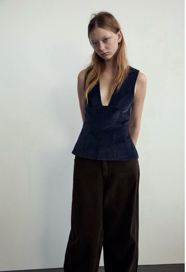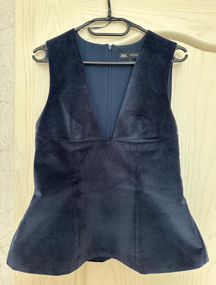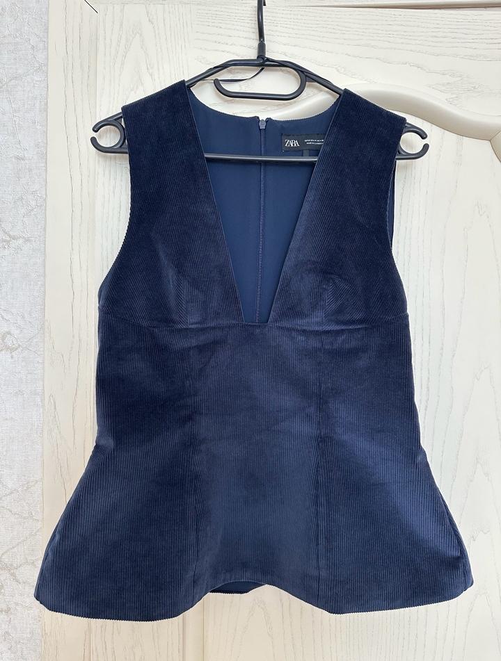 Топ ZARA . V-образный вырез, скрытая застежка-молния. Цвет морской синий. Вельветовый топ, можно носить как жилет поверх лонгслива/футболки. Размер М, хорошо подойдет на С Артикул: 507097