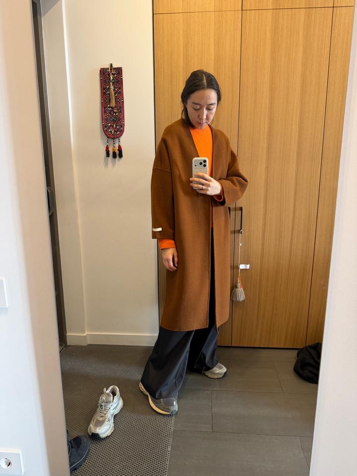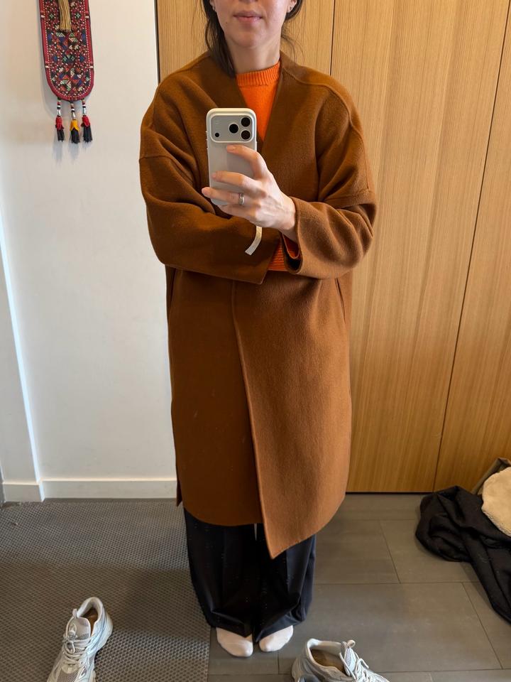 Корейский бренд пальто халат без пояса, легкое, в составе 50% шерсть 50полиэстер у меня рост 171 Состояние как новое Артикул: 507143