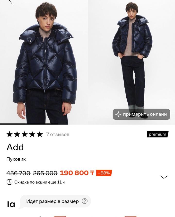 Куртка Add в идеальном состоянии , надевалась 1 раз. Капюшон на молнии. Изначальная цена 265.000. Параметры: Длина : 50 см Ширина 47 см Рукав : 63 см Плечи: 41 см Артикул: 507156