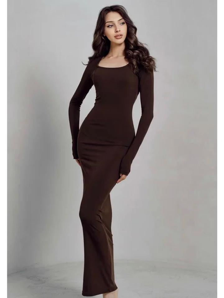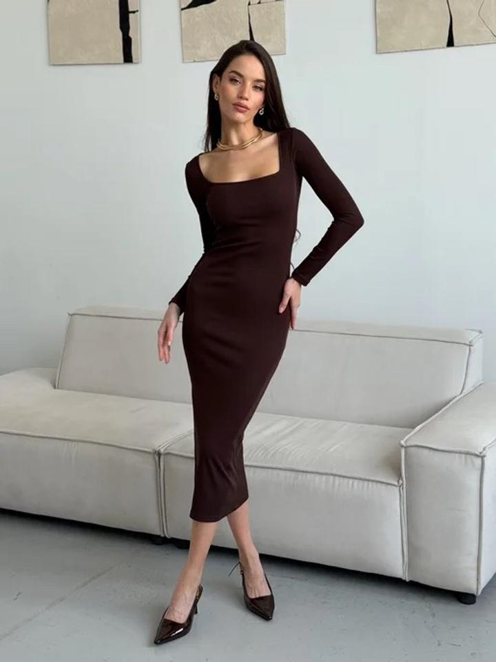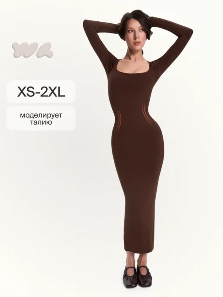 Коричневое платье макси длины под skims Размер стандарт- от М до Хл Сзади на завязках, можно приталить еще больше как корсет Материал плотный, не скатывается Состояние отличное Артикул: 507171