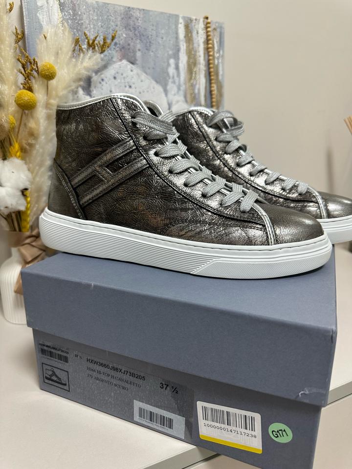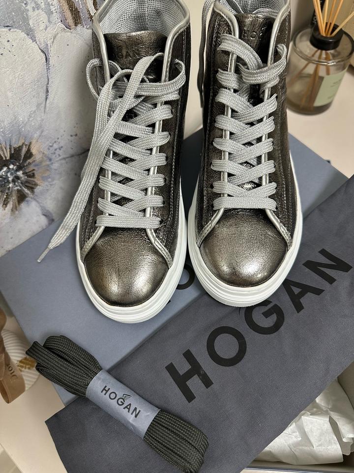 Оригинальные кеды Hogan, натуральная лаковая кожа. Размер по бирке на фото, но по ощущениям и по размеру стельки думаю и на 38 подойдет, носила редко, раза 3-4 и то на машине, состояние близко к новому, продаю, потому что не прижились в гардеробе, не с чем носить) Покупали в ТЦ Москва Алматы Полный комплект: коробка, пыльник, сменные шнурки. Артикул: 507350