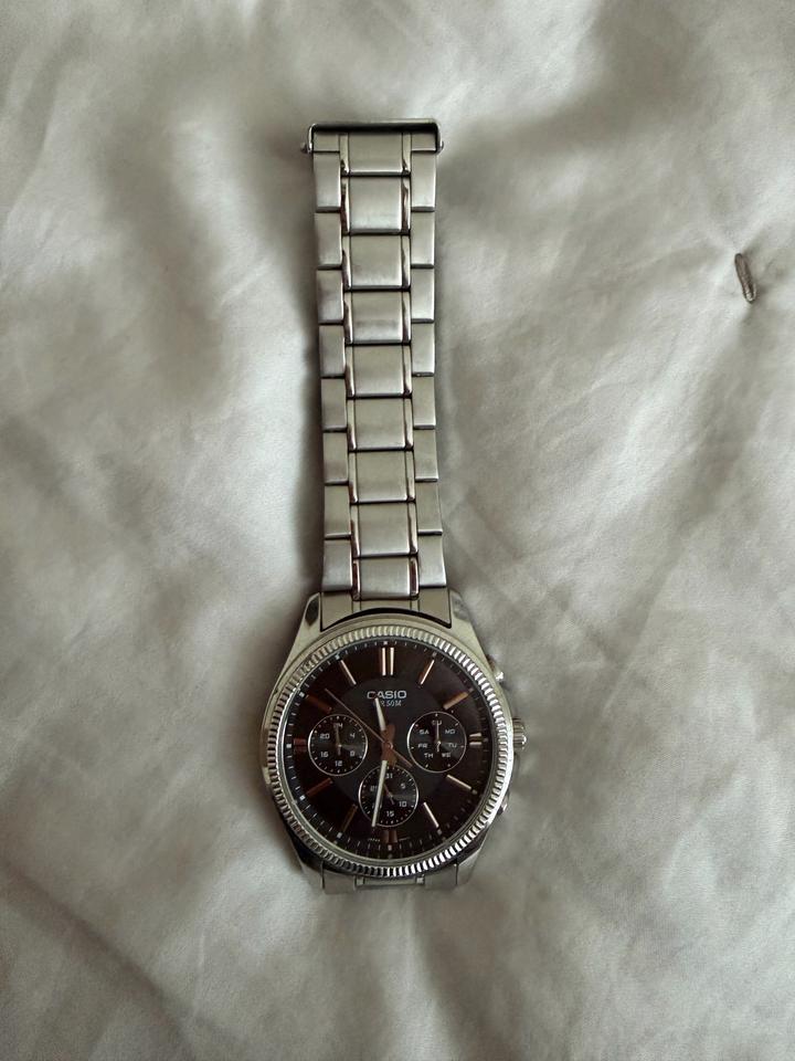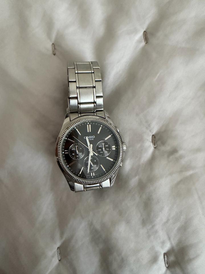 Продам наручные часы Casio в хорошем состоянии. Классическая модель с чёрным циферблатом и стальным браслетом — подойдут как на каждый день, так и под деловой стиль. Модель: Casio MTP-13+7### ### ## ##й формат -Материал: нержавеющая сталь Артикул: 507386