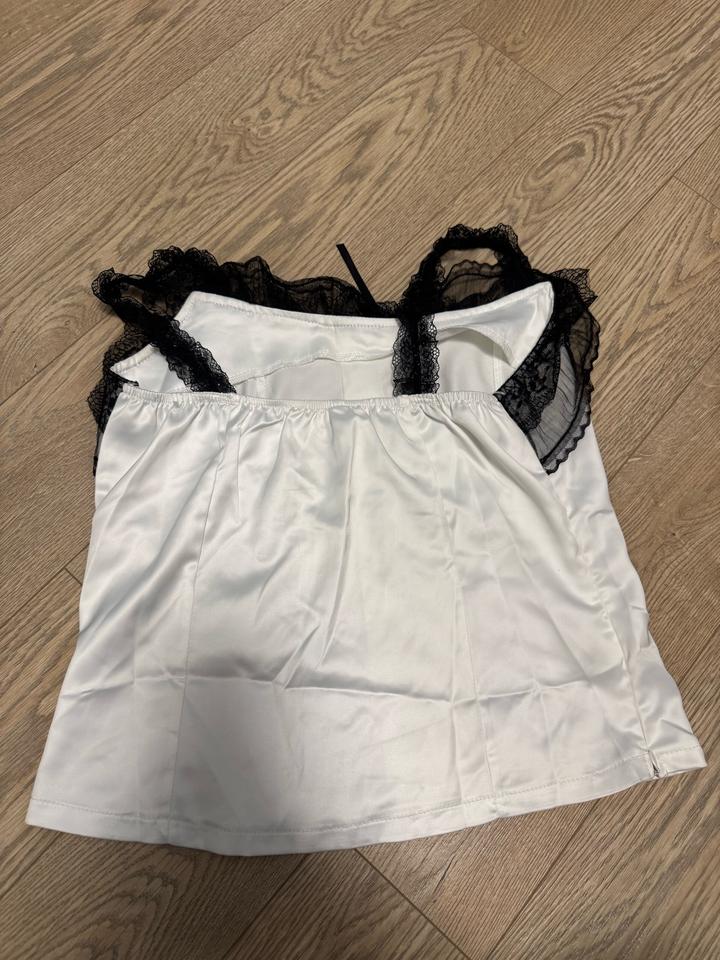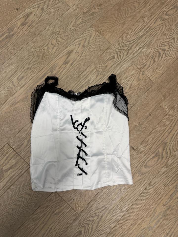Белый топ с кружевом и завязками посередине. Был надет пару раз , стал большой , покупался в готическом шоуруме. Артикул: 507407
