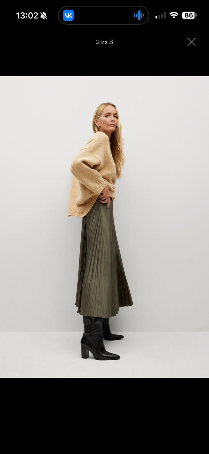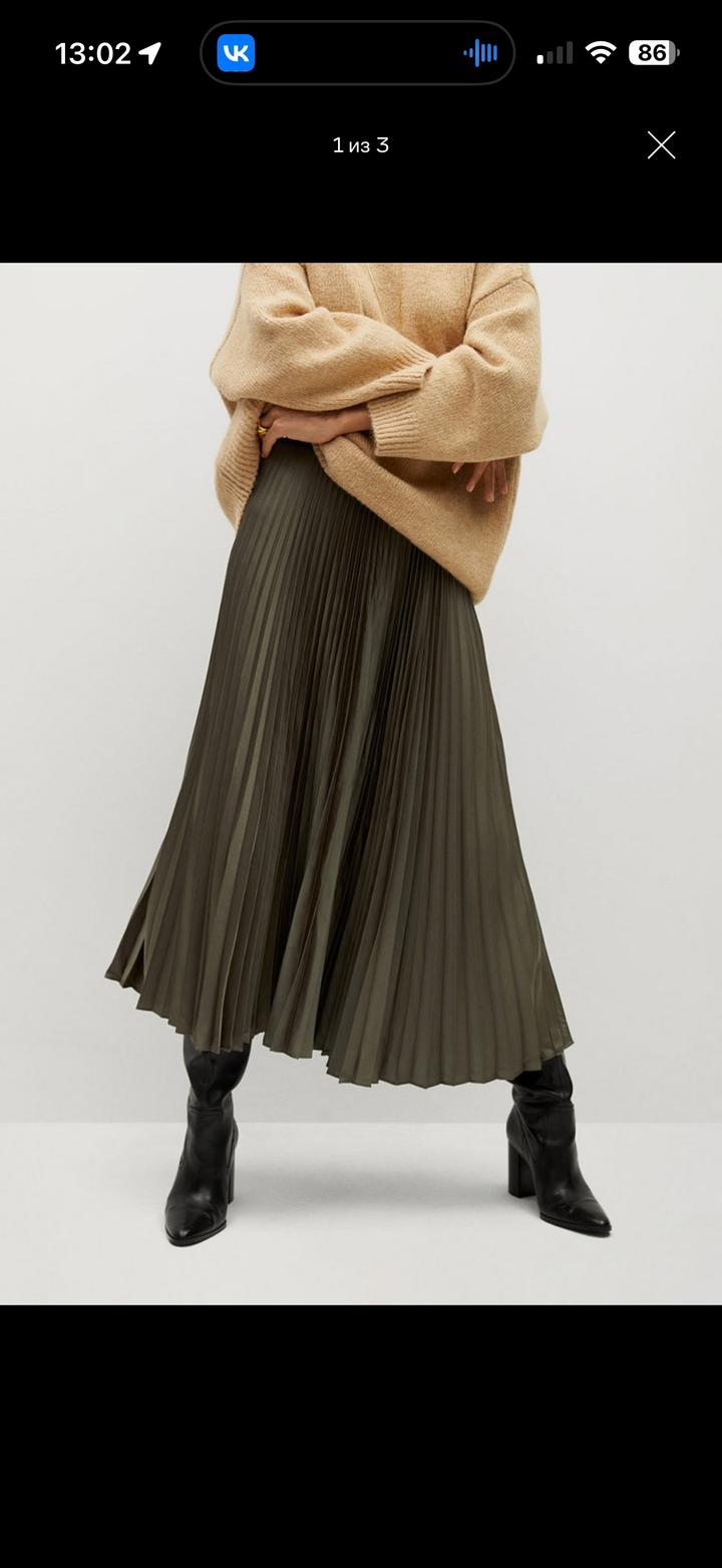 Юбка плиссе Цвет на фото не передает, реальный цвет как на модели, темно зеленый хаки, очень красивый Размер xs Артикул: 507414