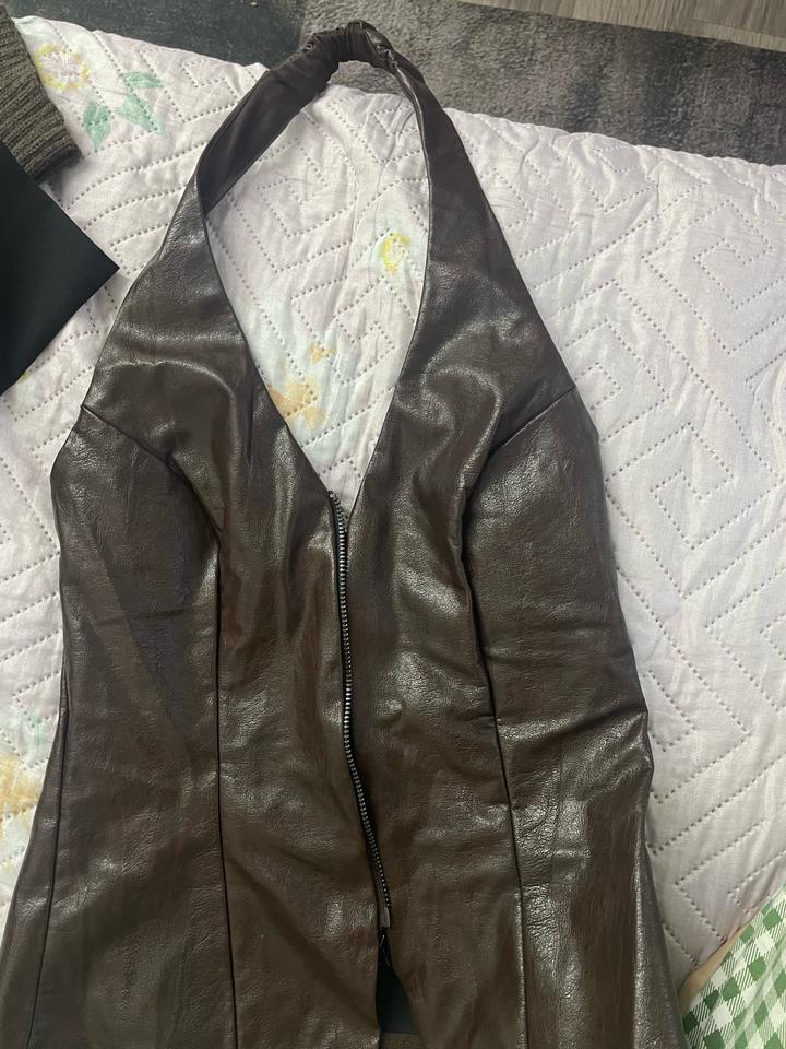 Топ кожаный в коричневом цвете, на молнии, б/у один раз, состояние отличное Артикул: 507431