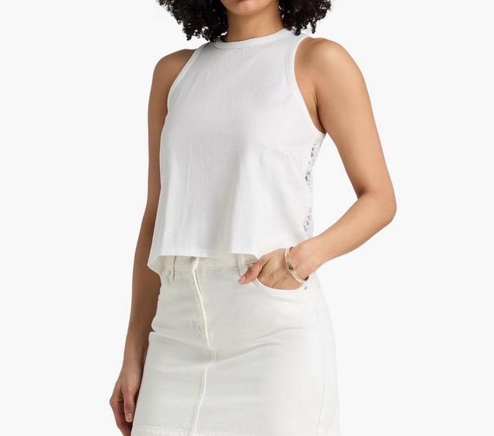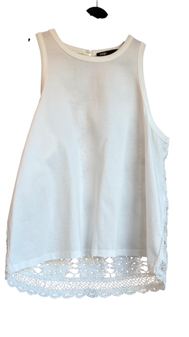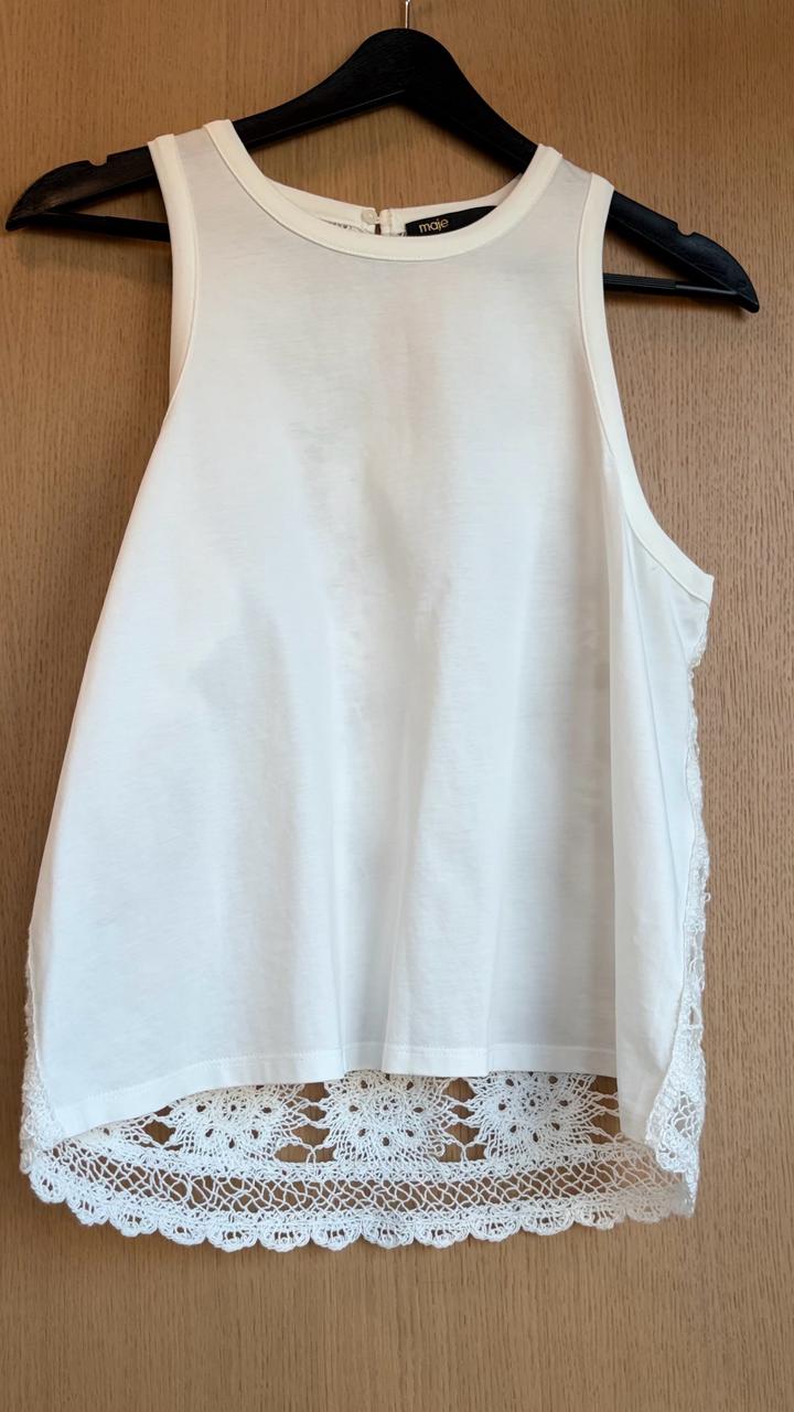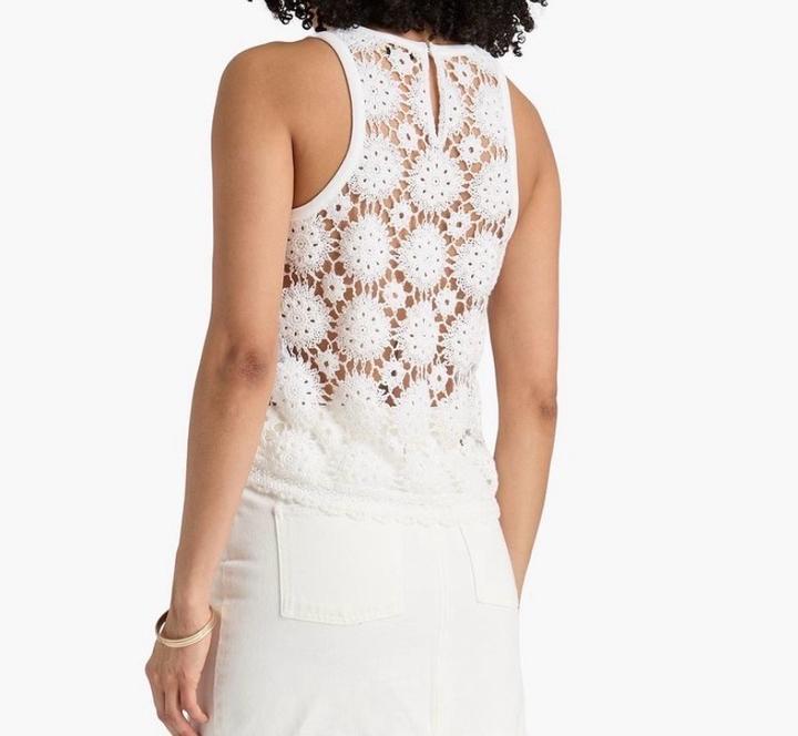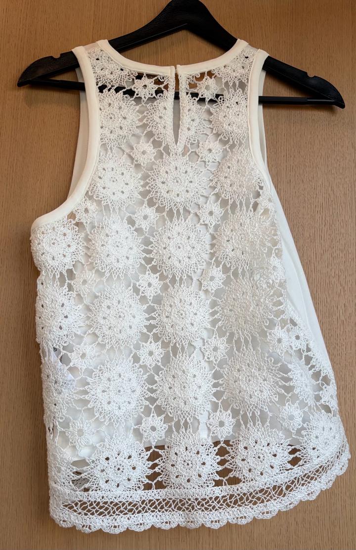 Белый топ с кроше спинкой Круглый вырез Размер 1 соответсвует S(IT 40) На модели (рост 175 см) размер 1 Артикул: 507437
