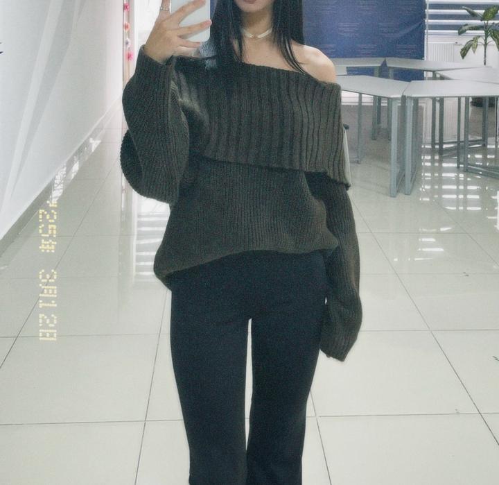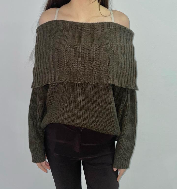Свитер женский коричневый с открытыми плечами, крупная вязка, состояние отличное Артикул: 507440