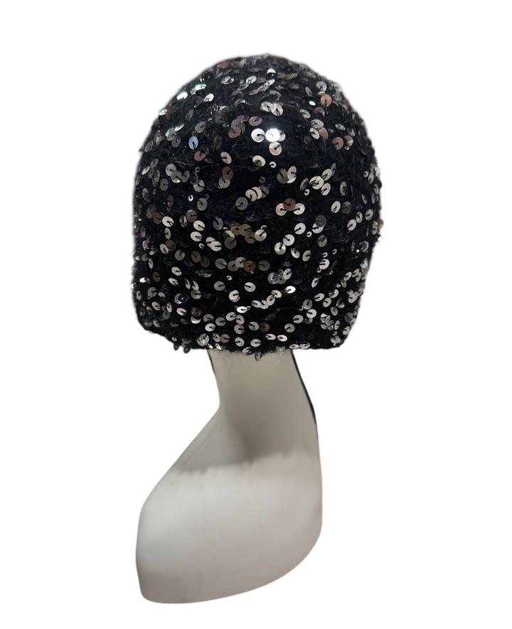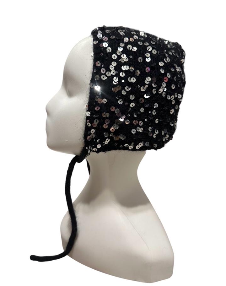 Чёрный чепчик ручной работы, украшенный мерцающими пайетками. Связан в две нити Мягкая и комфортная посадка Завязки для удобной фиксации Универсальный размер Лёгкий, но тёплый Артикул: 507501
