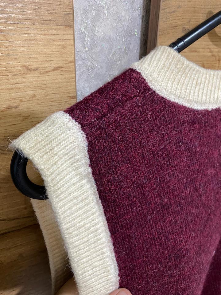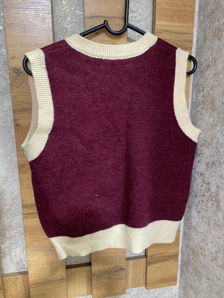 Стильный вязаный жилет в трендовом бордовом цветеS/M