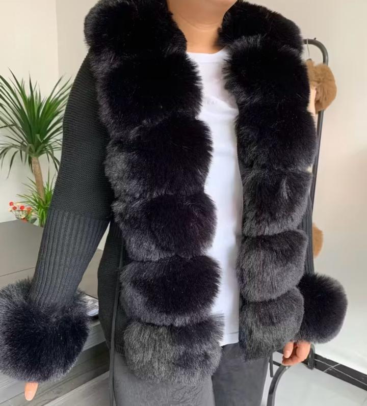 Черный кардиган с мехом на рукавах и спереди Состояние отличное Торг есть Артикул: 507615